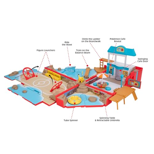 Jazwares Pokemon Carry Case Beach Battle Playset - Portable Transforming Backpack Playset with Action Features and 2-inch Pikachu Battle Figure