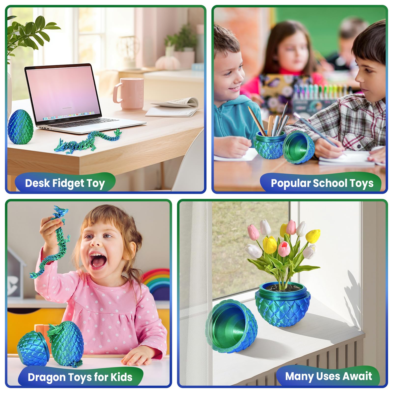- TBOLINE 12" 3D Printed Dragon Egg – Articulated Crystal Dragon Toy, Fidget Dinosaur Egg Gift for Kids & Teens Ages 4-12 (Laser Green)