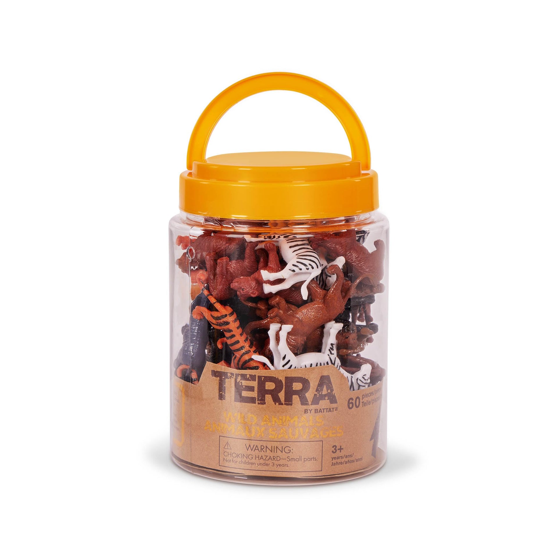 Terra by Battat 60 Pcs Wild Creatures Tube – Mini Animal Figurines with Lion, Tiger, Hippo, Bear & More – Safari Educational Toys for Kids 3+