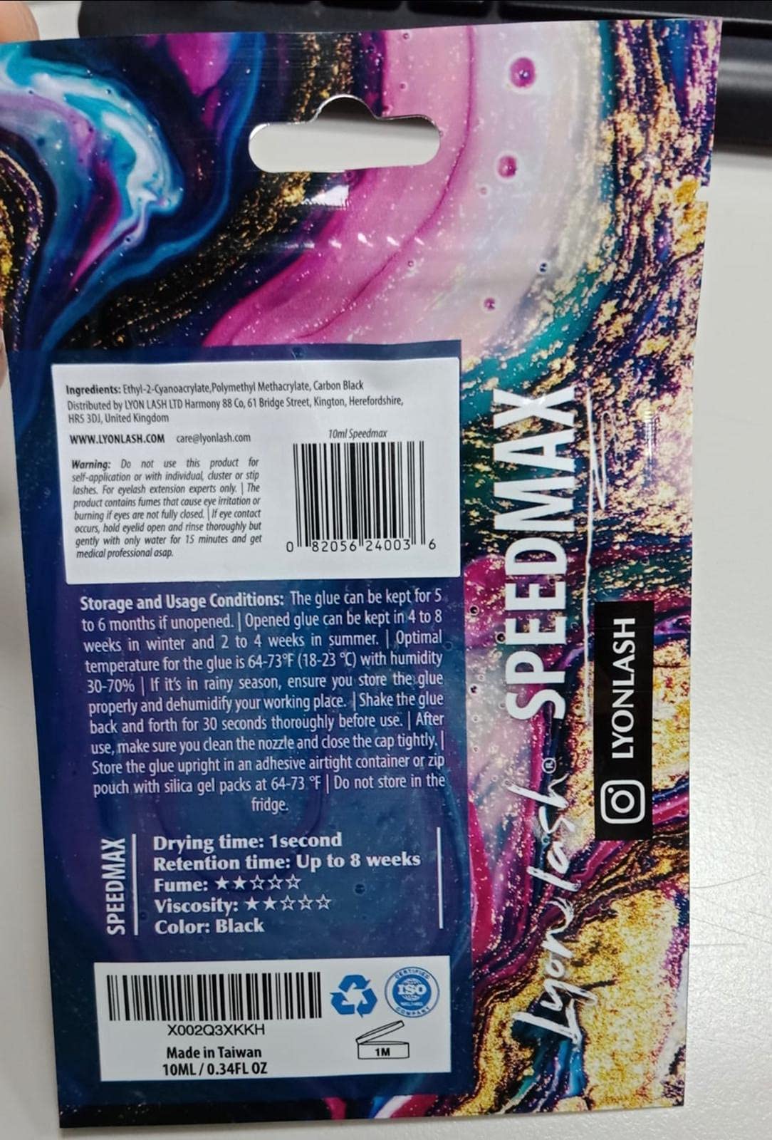 - Lyon Lash SPEEDMAX Eyelash Extension Glue, 0.3–1.3s Dry Time, 8 Week Retention, Black Adhesive for Professional Lash Supplies, 10ml/0.34oz