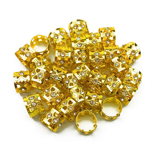 Hyamass 30pcs Gold Hair Accessories, Rhinestone Aluminum Dreadlocks Beads with Adjustable Cuffs, Metal Hair Ring Clips Hair Jewelry for Women