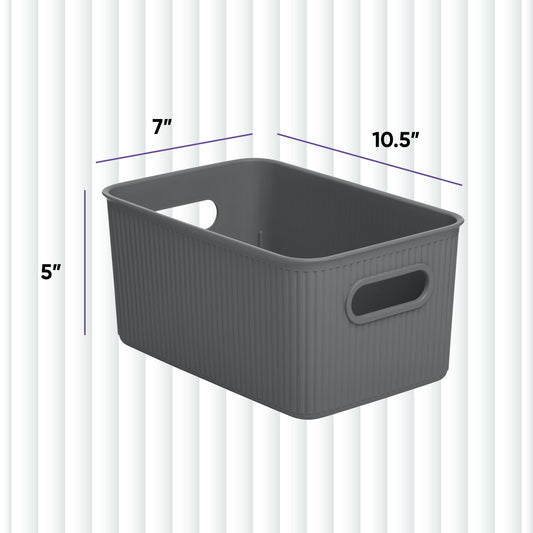 Superio Ribbed Collection - Decorative Plastic Open Home Storage Bins Organizer Baskets, Medium Grey (1 Pack) Container Boxes for Organizing Closet…