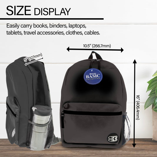 BAZIC School Backpack 16" Black, Lightweight School Bag Padded Back & Adjustable Strap for Students, Travel Bag Fit A4 Notebook, 1-Pack