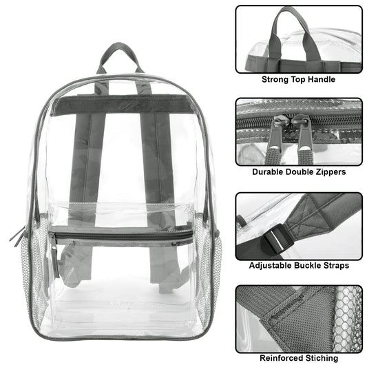 Clear Backpack Heavy Duty Transparent Bookbag for Kids, Boys, Girls, School, Travel, Stadium Approved (Grey)