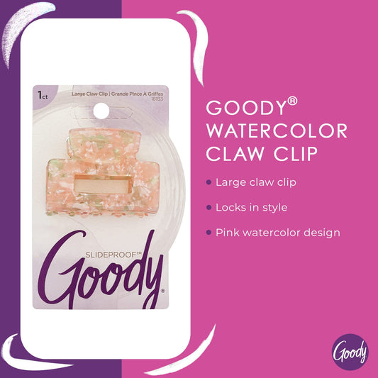 Goody Large Claw Clip, 1 Count - Watercolor, Pink - for All Hair Types - Great for Easily Pulling Up Your Hair - Pain-Free Hair Accessories for Women