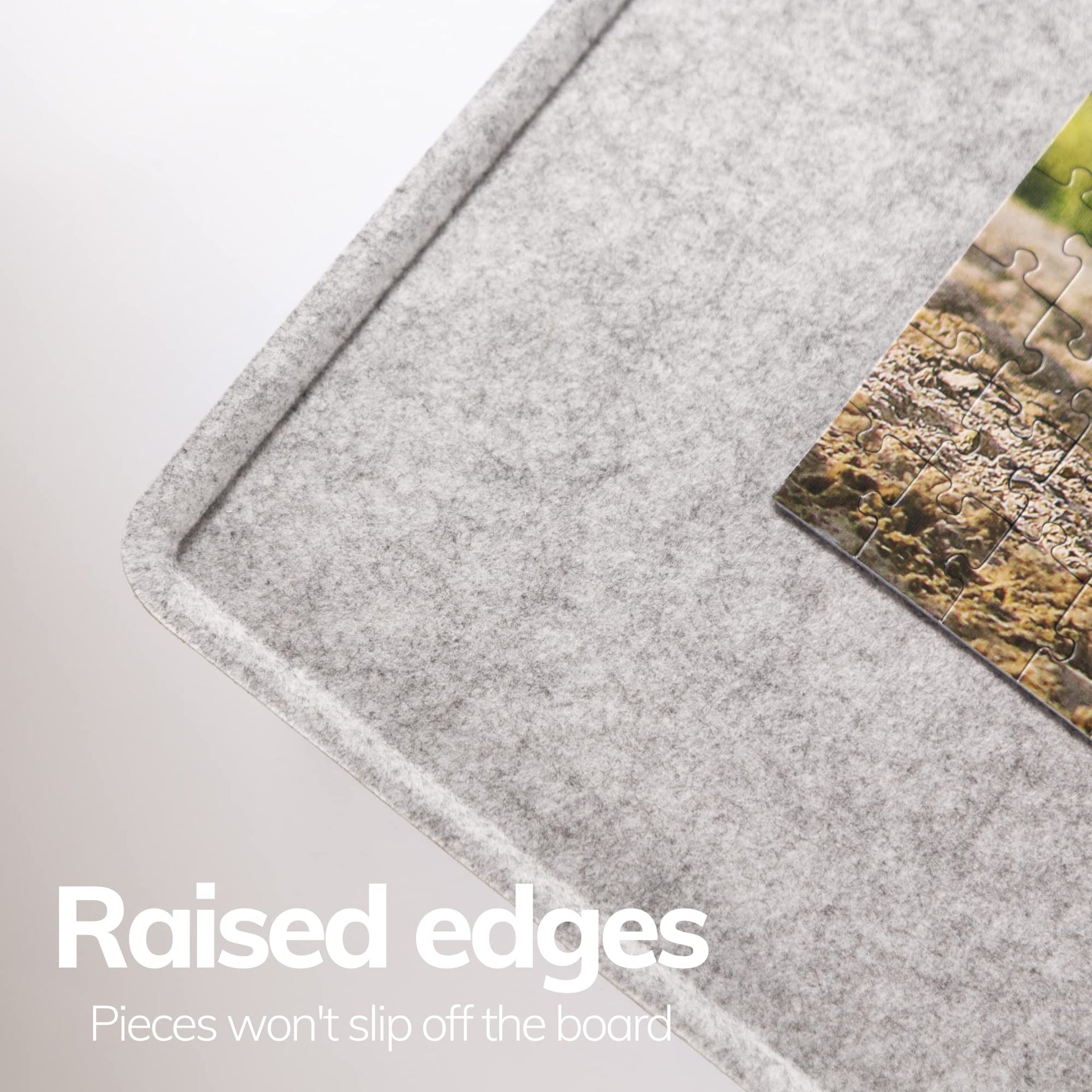 - PERFECT SIZE FOR 1000 PIECES PUZZLE : Our jigsaw board with cover is sized 33.5 " x 25.5" to fit 1000 piece puzzles. Cozy felt cover helps protect your puzzle pieces when not in use and has a handle for easy opening.