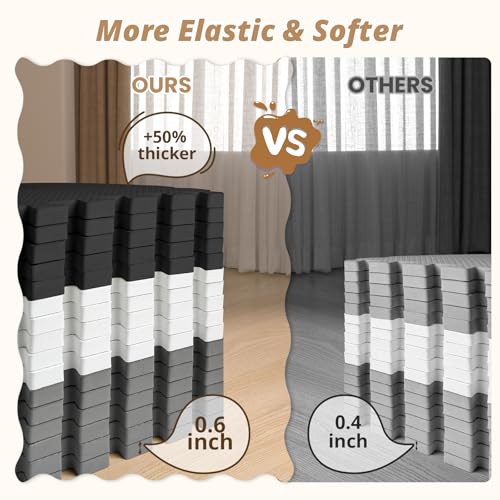 - Thick Foam Mat: These 0.6-inch extra-thick foam floor tiles for kids provide a safe area for kids to play, preventing them from bumping into things while playing.