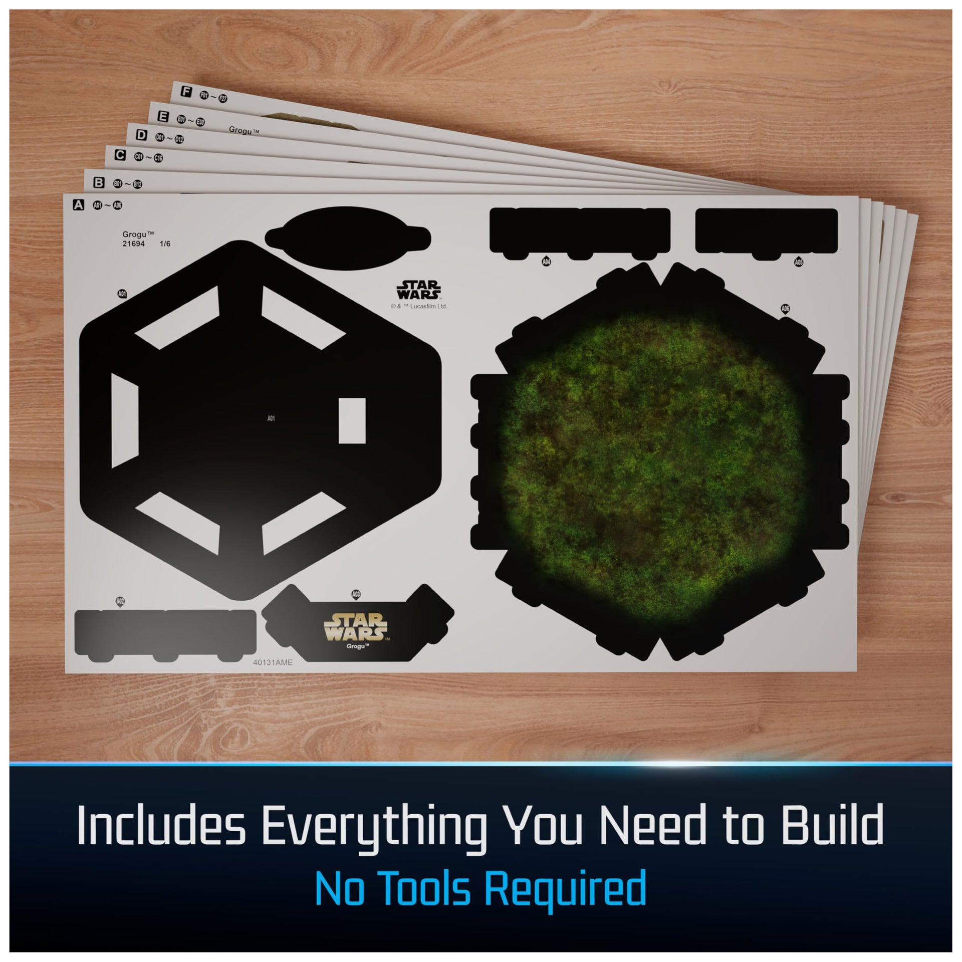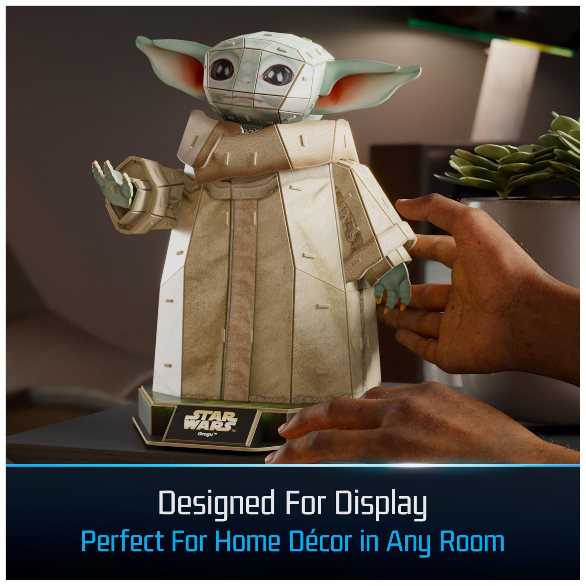 - Detailed Replica: Embark on an epic building adventure with a film-accurate Star Wars shelf decor piece. This 4D Build Grogu cardstock model kit has movie-quality intricate detail, plus glue and a stand!
