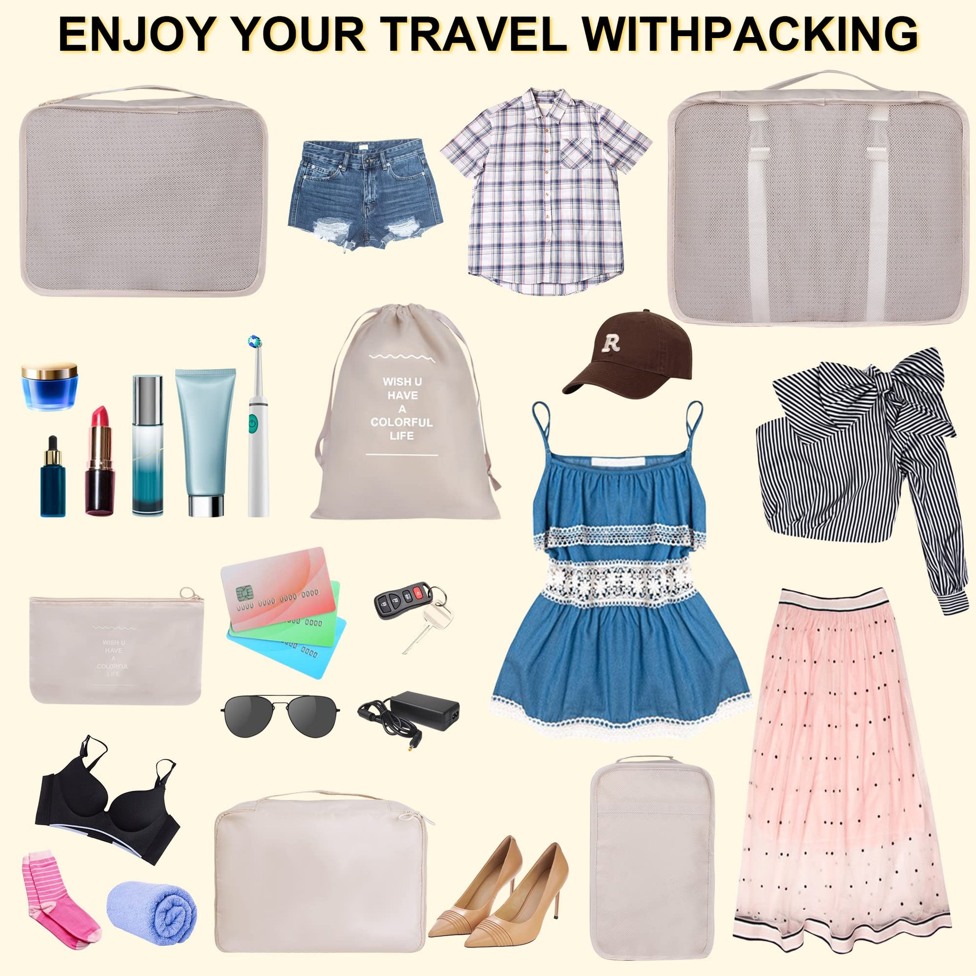 - Save Time and Space:Using this fabric travel cube packaging, you can put all your luggage in your carry-on luggage or suit bag, saving time and space. These travel bags are the present for travelers, yourself, friends or relatives. Backpacking, travel, fitness, beach or tourism.