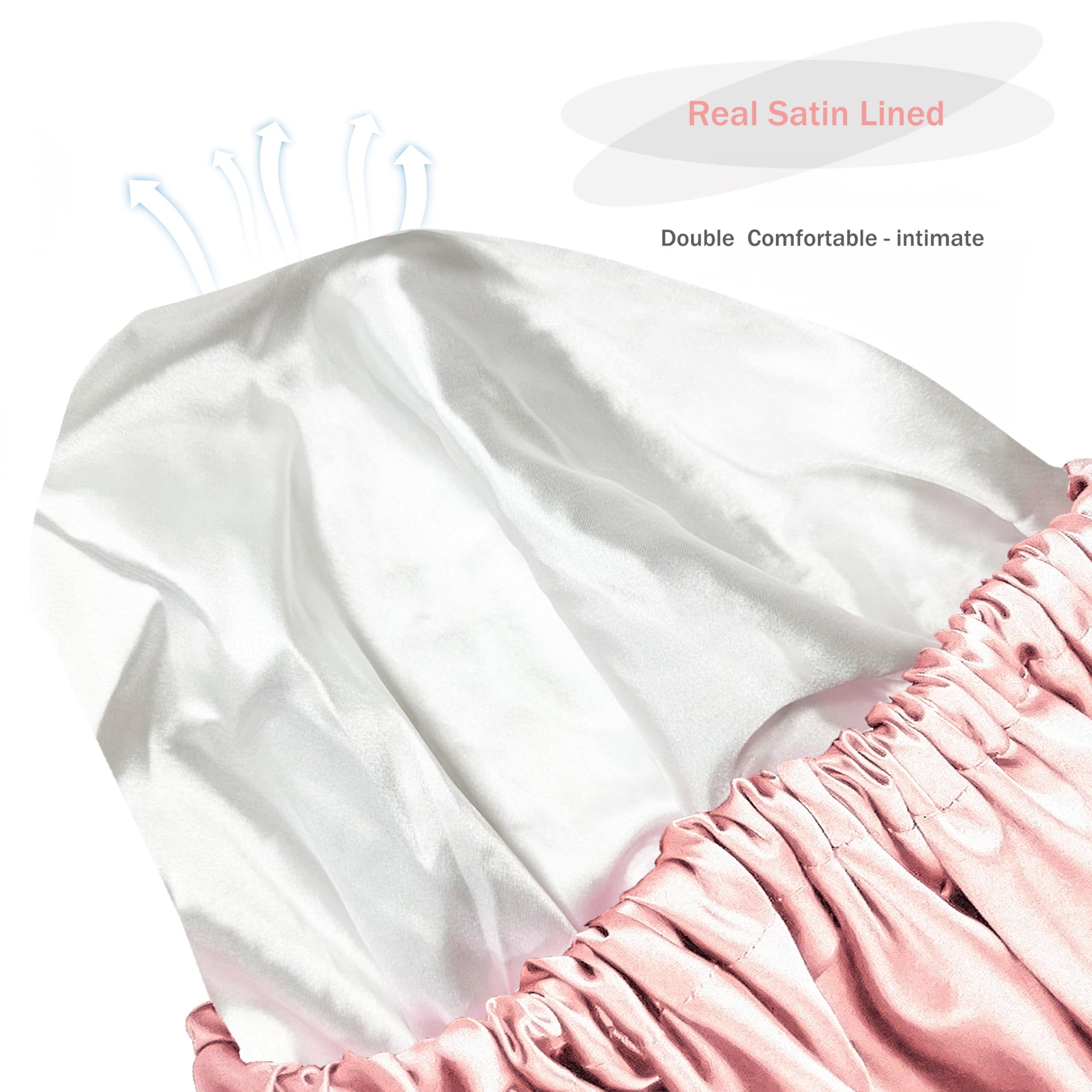 - 1.✅【Luxury Silk Fabric】Upgrade the material of the shower cap to a soft, comfortable and breathable silk fabric, which looks like a very fashionable and advanced waterproof shower cap. At the same time you can use this luxurious shower cap as a nightcap.