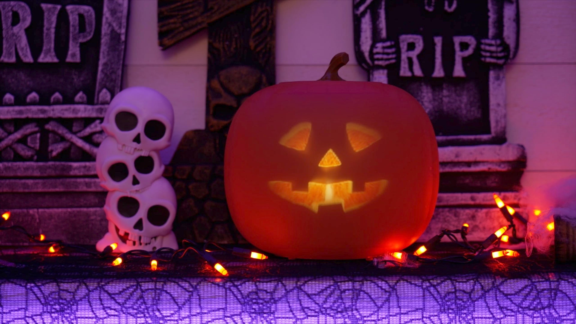 • Patented technology! Short Throw Projector located inside pumpkin shell. Simple 3 button controls: 2 volume control buttons + 1 Skip button to go skip animations. Still mode: pause animation.