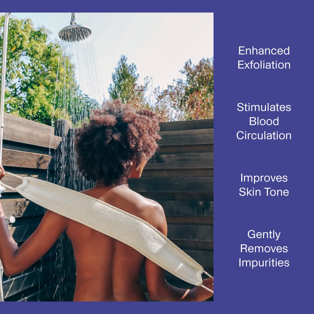 AQUIS Double-Sided Exfoliating & Cleansing Back Scrubber, Fast Drying, Ultra-Durable Microfiber, Linen