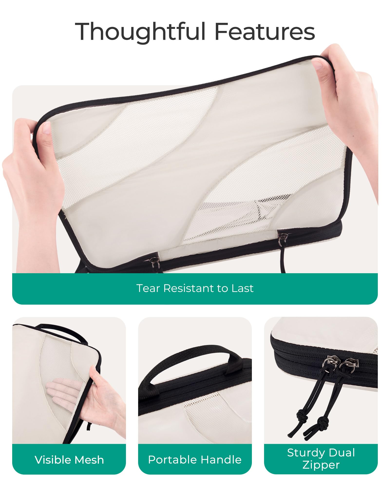 - Tear Resistant to Last: The suitcase organizer bag set is made of durable polyester and high-density mesh that won't easily wear out under heavy use or compression. Sturdy zippers ensure smooth operation and reduce the possibility of snagging, allowing you to open and close the packing cube with ease.