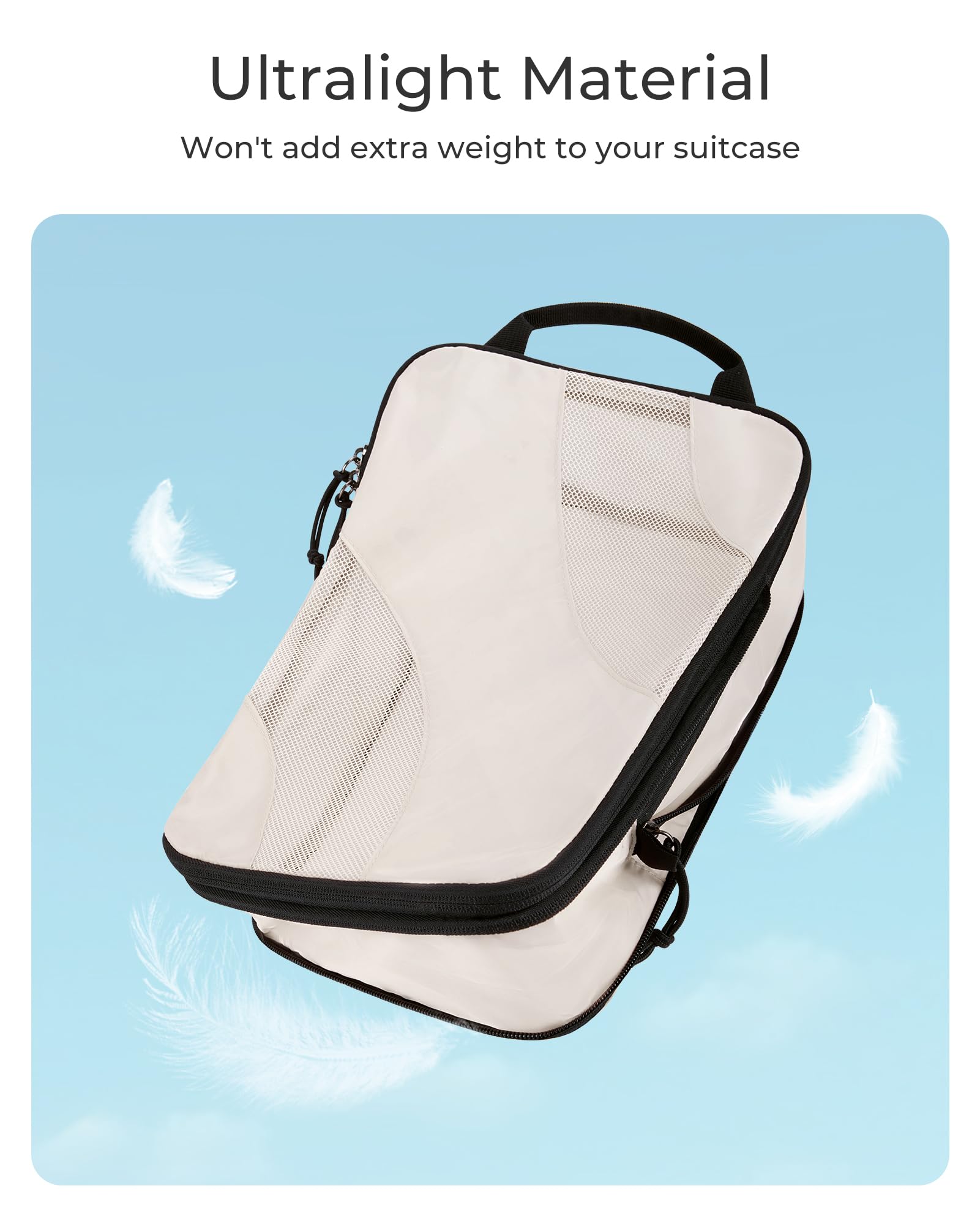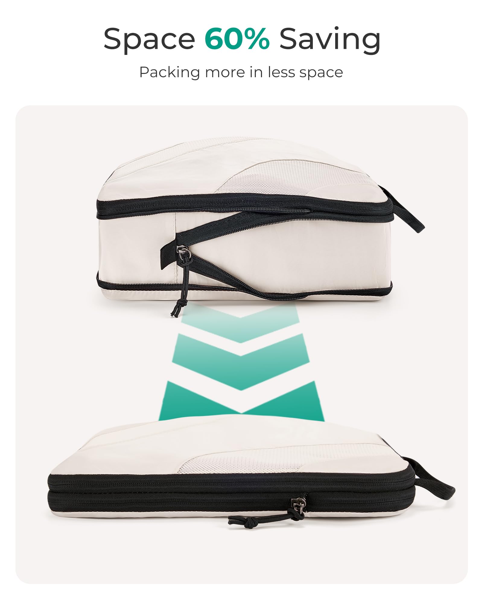 - Save 60% Space: Just like how a vacuum sealer works. With our compression travel cubes, you can easily compress clothing and other essentials into a compact shape, freeing up to 60% of luggage space. Imagine being able to hold twice as much stuff in your luggage without compromising on style or comfort.