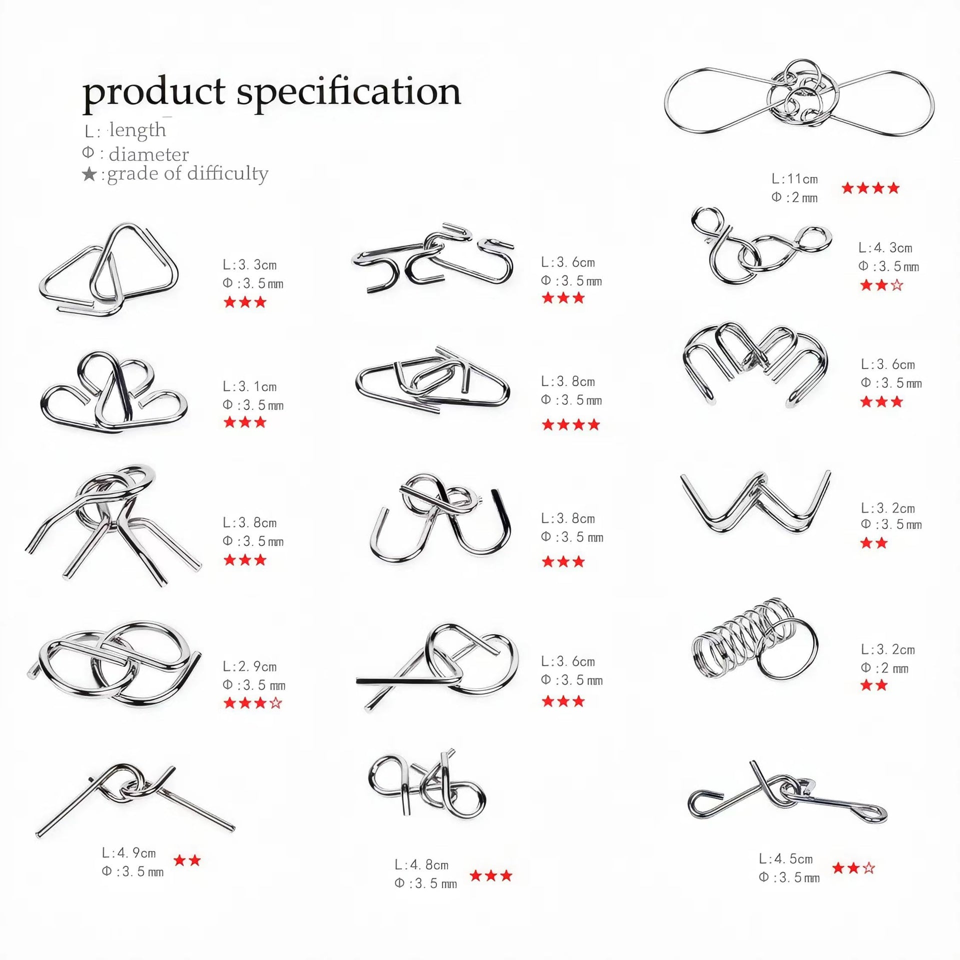 GEKELI Metal Wire Puzzle Set – 24 Brain Teasers with Pouch, IQ Test Disentanglement, Interlock & Unlock Games, Magic Trick Toy for Kids & Adults
