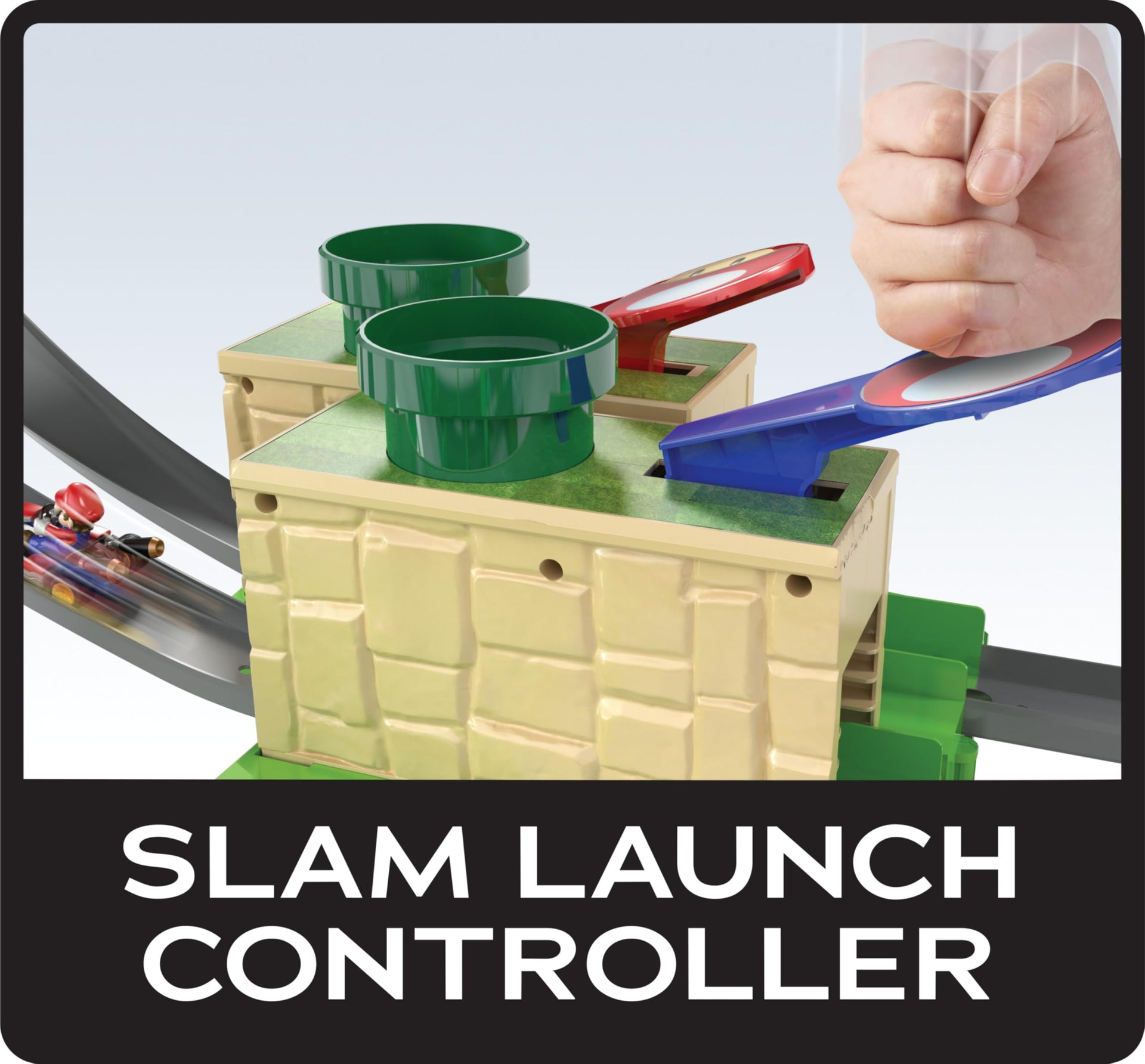 Hot Wheels brings the fast-paced action of the Mario Kart world to life with a Circuit Track inspired by iconic courses from the popular video game. Race favorite Mario Kart Mario as a die-cast kart vehicle and overcome obstacles and challenges-just like in the game, but this time on Hot Wheels track! Load the kart into the launcher and take off around the track! Pump up challenges by reconfiguring the track and connecting to the Piranha Plant, Thwomp sets and the full Mario Kart Circuit track set (sold separately). Great stunting and racing thrills for younger kids who love Mario Kart! Each sold separately for ages 3 and older.
