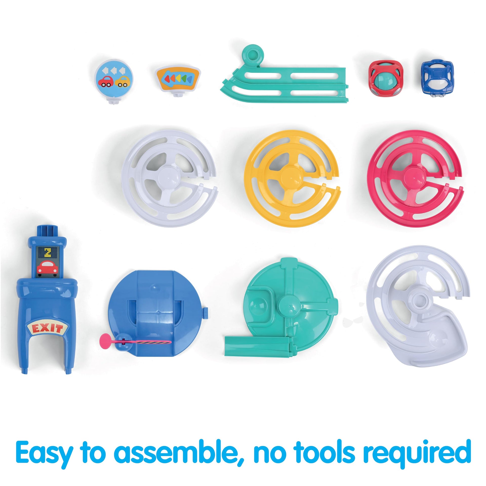 Details: Rev up imaginations with Kidoozie's Park N Roll Garage! Little car-lovers will be zooming from floor to floor on the thrilling spiral ramps, past the working parking gate, and into endless parking adventures. This action-filled playset features four tiers of spiral ramps, a manual parking gate, and two free-wheeling cars that can travel down the ramps and through the gate. The garage is also over 15 inches tall, ensuring plenty of room for all of your child's cars. With this playset, your child can create their own driving adventures - buckle up, young drivers, and get ready for hours of imaginative garage fun!