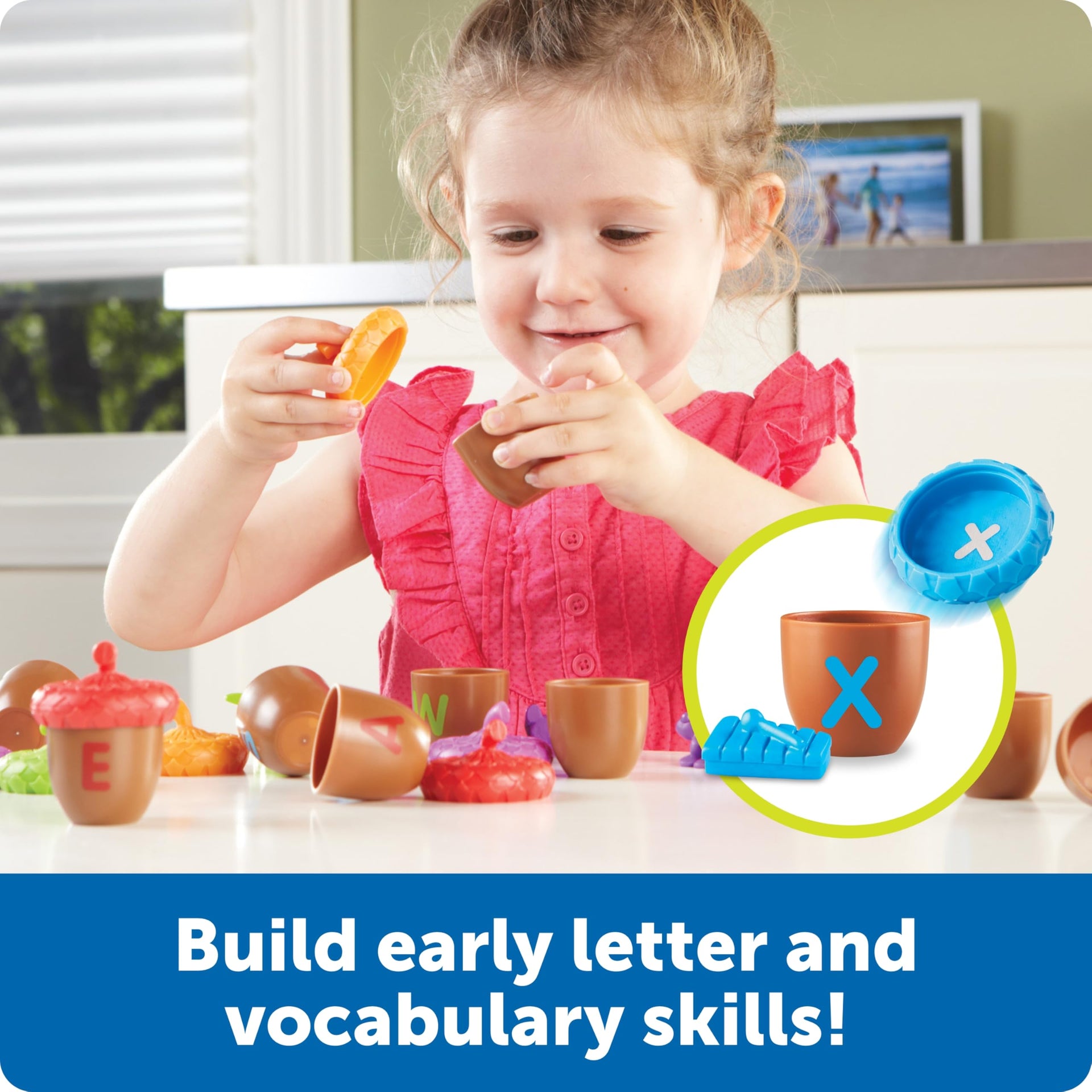 - EARLY VOCABULARY SKILLS: Each fun acorn figure helps grow kids' knowledge of animals, plants, and other common vocabulary words, from the apple in A to the zebra in Z.