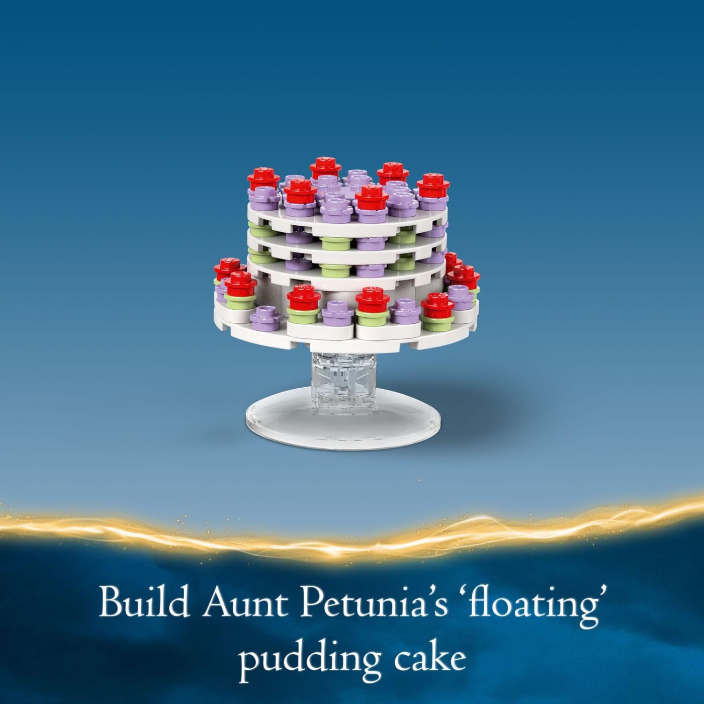 - Iconic accessories – Kids can relive classic movie moments as they build Aunt Petunia’s ‘floating’ pudding cake and a detailed model of Tom Riddle’s diary with Harry Potter’s sock