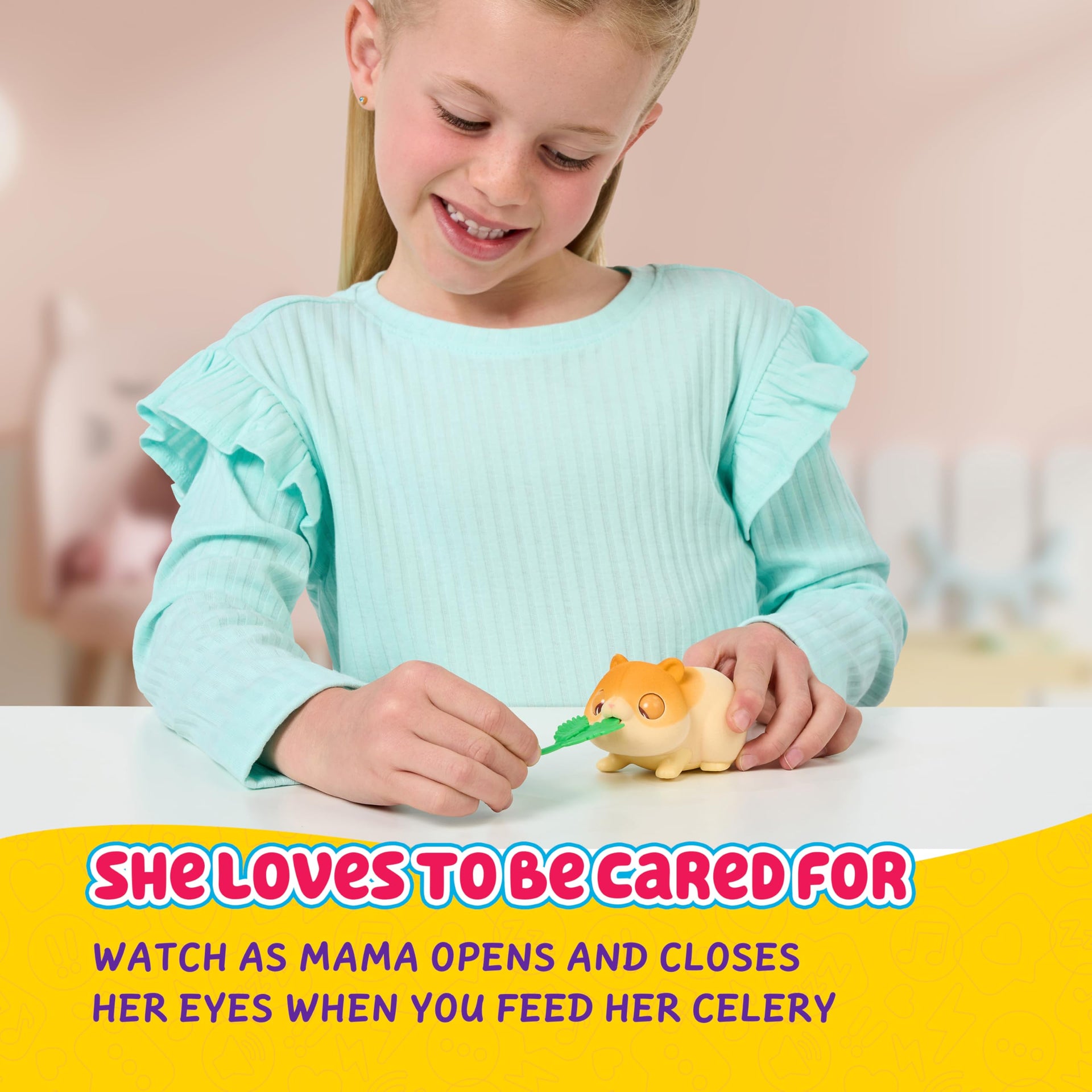 • Interactive Mini Mama Hamster: Nurture your mama hamster toys for kids by patting her, feeding her, and brushing her to make her heart light up in joy - these hamster supplies are ideal for nurturing play for ages 4 and above