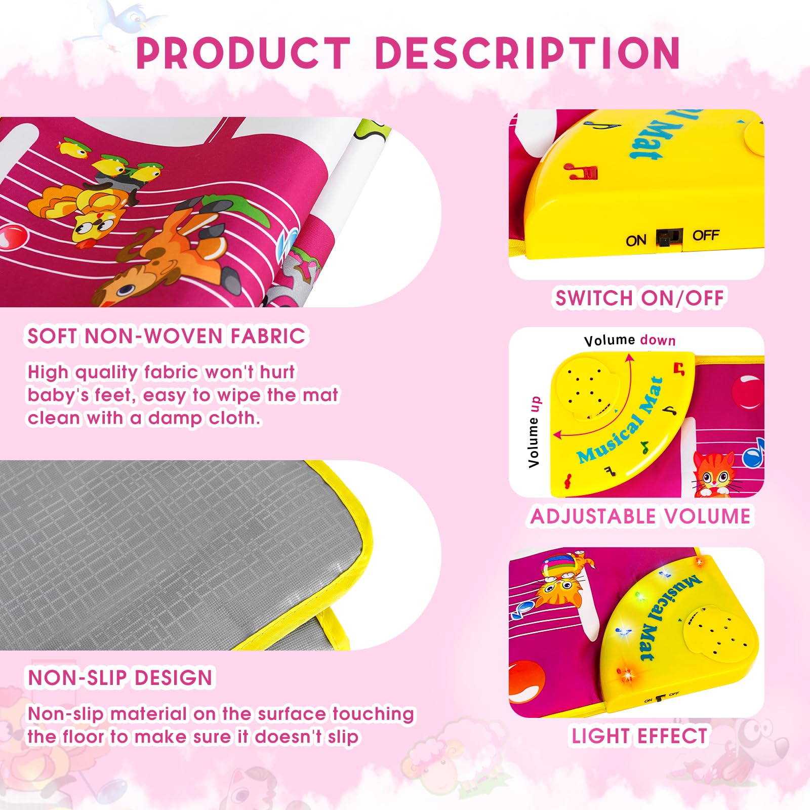 M SANMERSEN Piano Mat - Musical Keyboard Floor Playmat 39.5" Electronic Music Animal Touch Play Blanket Funny Xmas Gift Toy for 1 2 3 Year Old