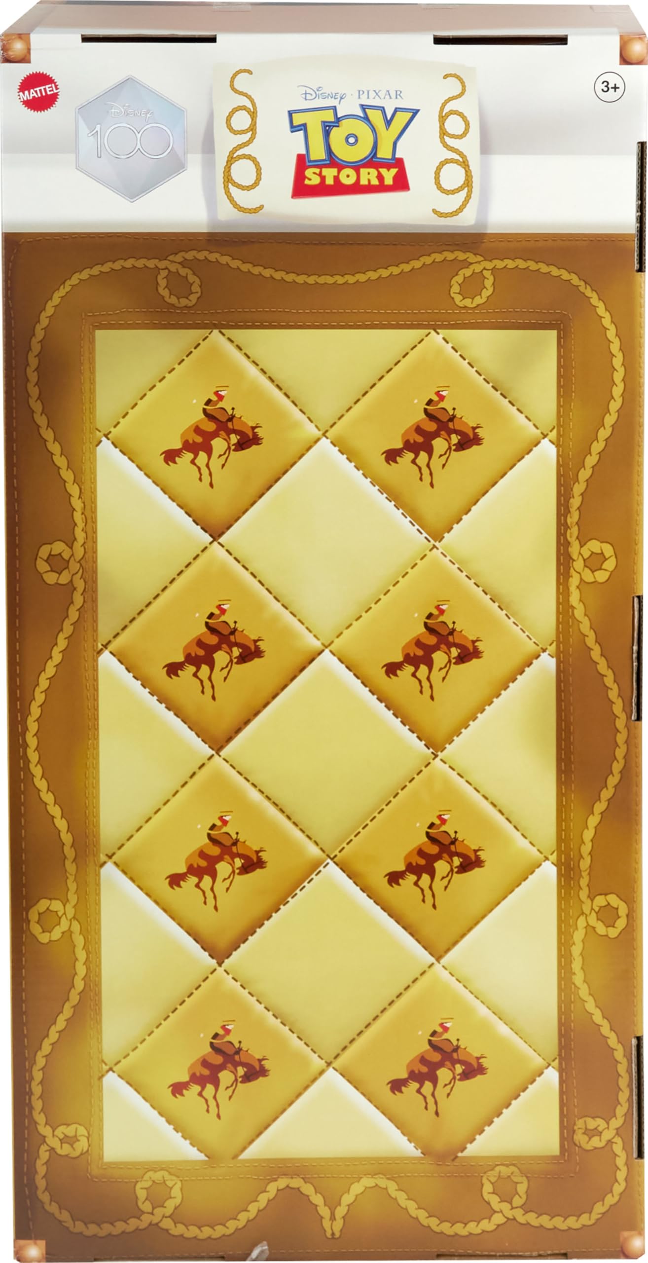 Details: This Andy's Bed Pack is chock full of figures from Disney and Pixar's Toy Story. With 7 total figures, it's ready for storytelling adventures. Celebrating Disney100, this pack includes Woody, Slinky Dog, Rex, Hamm, an Alien, Rocky Gibraltar and a new exclusive figure – the "Howdy" Shark! All figures have authentic design and articulation, including the Shark with 3 articulated fins. A cowboy hat accessory fits both Woody and Shark, to match the storyline from the classic "Howdy, Howdy, Howdy!" scene. The figures are packed into a closed box inspired by Andy's bed. Colors and decorations may vary.