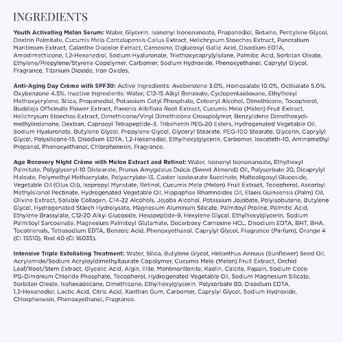 - YOUTH ACTIVATING MELON SERUM – Featuring melon leaf stem cells, encapsulated to maximize potency and freshness, this concentrated skin booster is designed to visibly plump and firm skin, diminish uneven tone and increase radiance. It also works to fight future damage from free radicals.