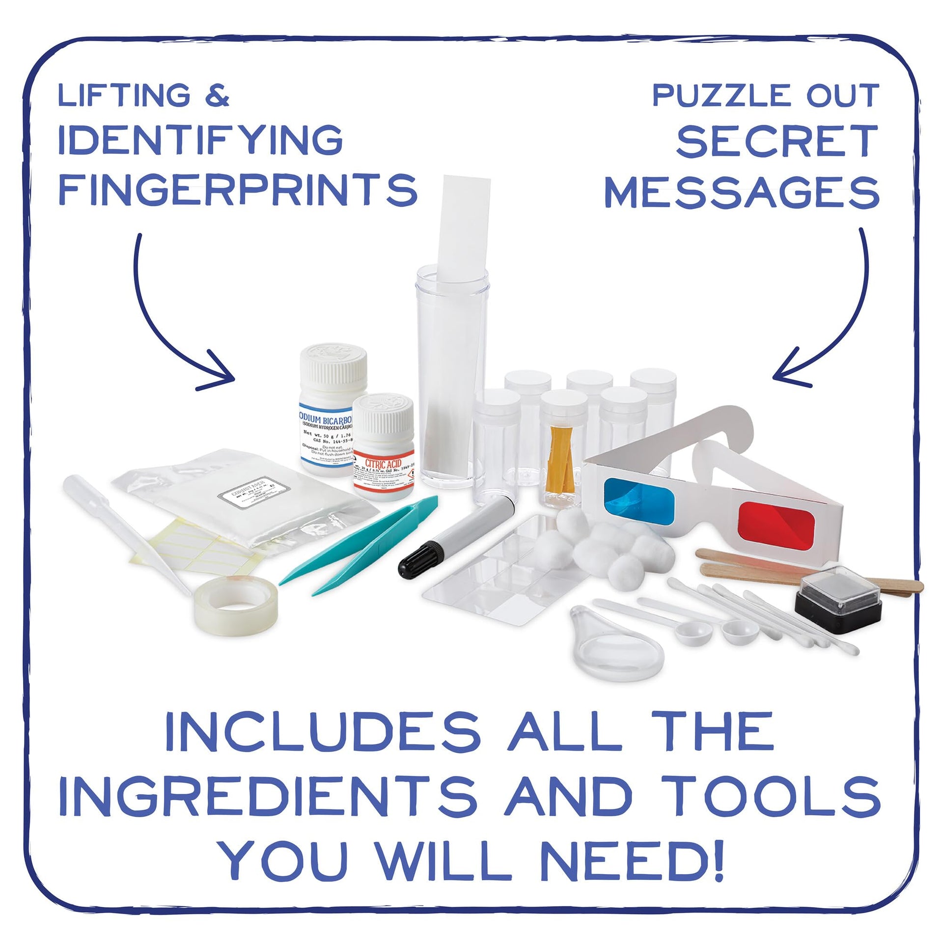 - Comprehensive Forensic for Kids Kit: Great as a girls detective kit and boys detective kit alike, this evidence kit for kids includes all necessary supplies for forensics experiments, plus a full-color guide book (Ages 8 and up)
