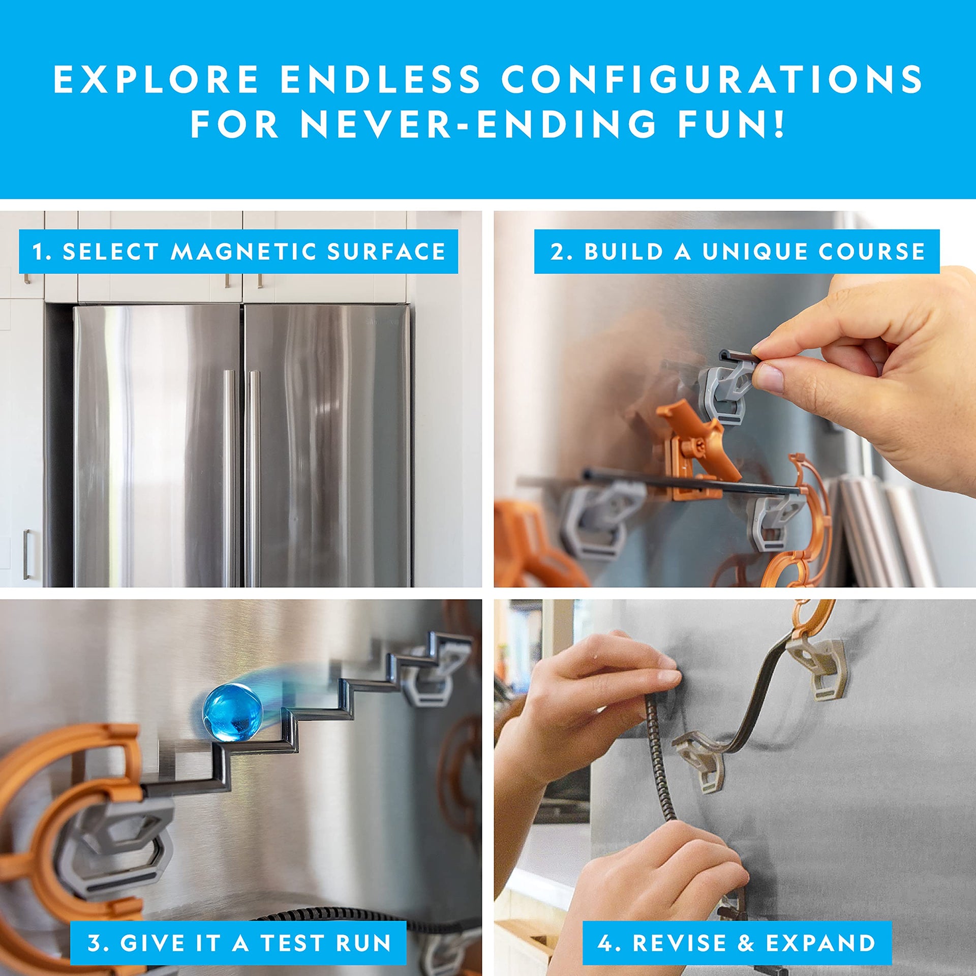 National Geographic Magnetic Marble Run 75pcs – STEM Building Set with Tracks, Trick Pieces & Marbles for Kids & Adults Marble Maze