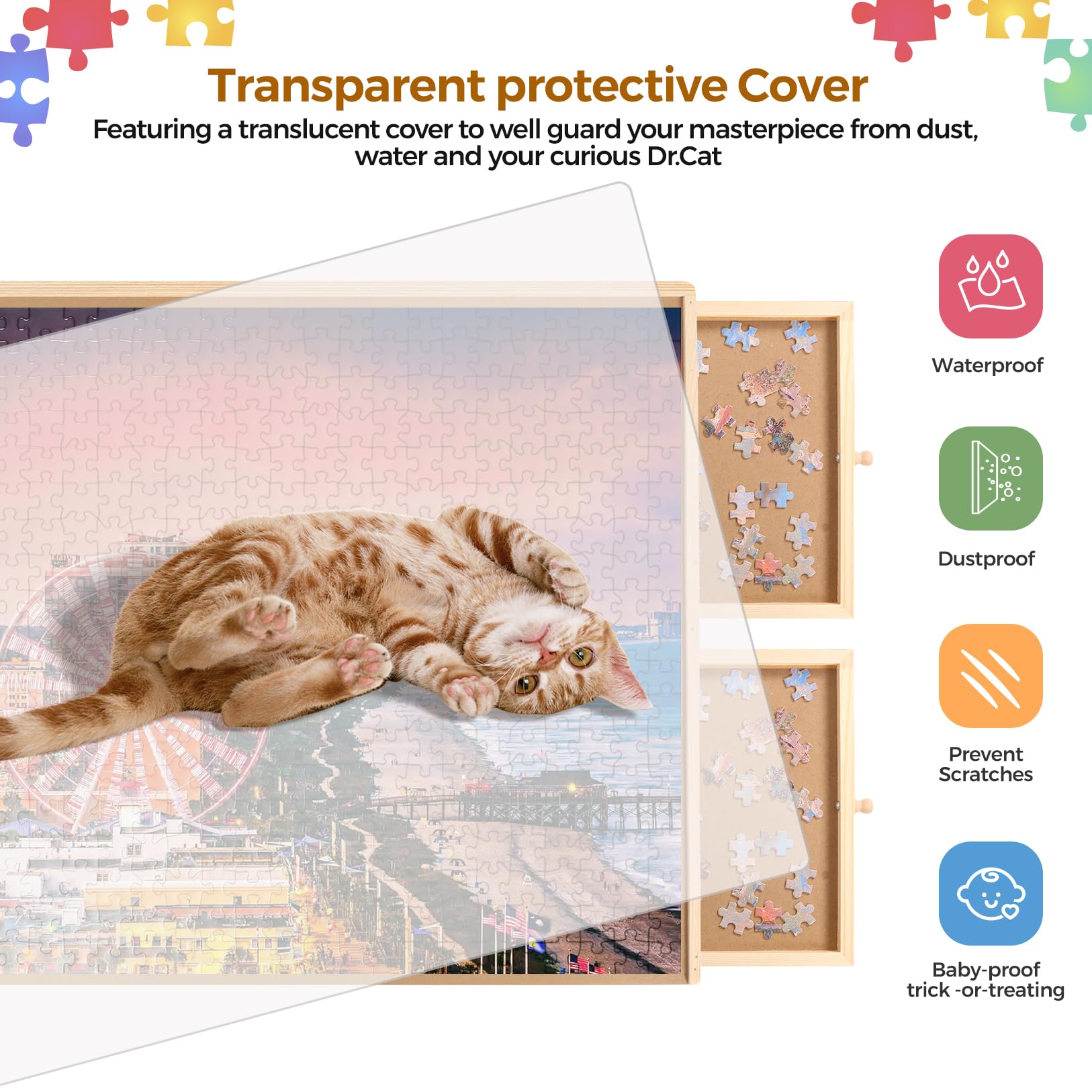 - 4 Drawers and Storage Cover: With 4 spacious drawers and a protective cover, this table keeps your puzzle pieces organized and safe. No more searching for lost pieces or dealing with clutter – everything stays neatly contained!