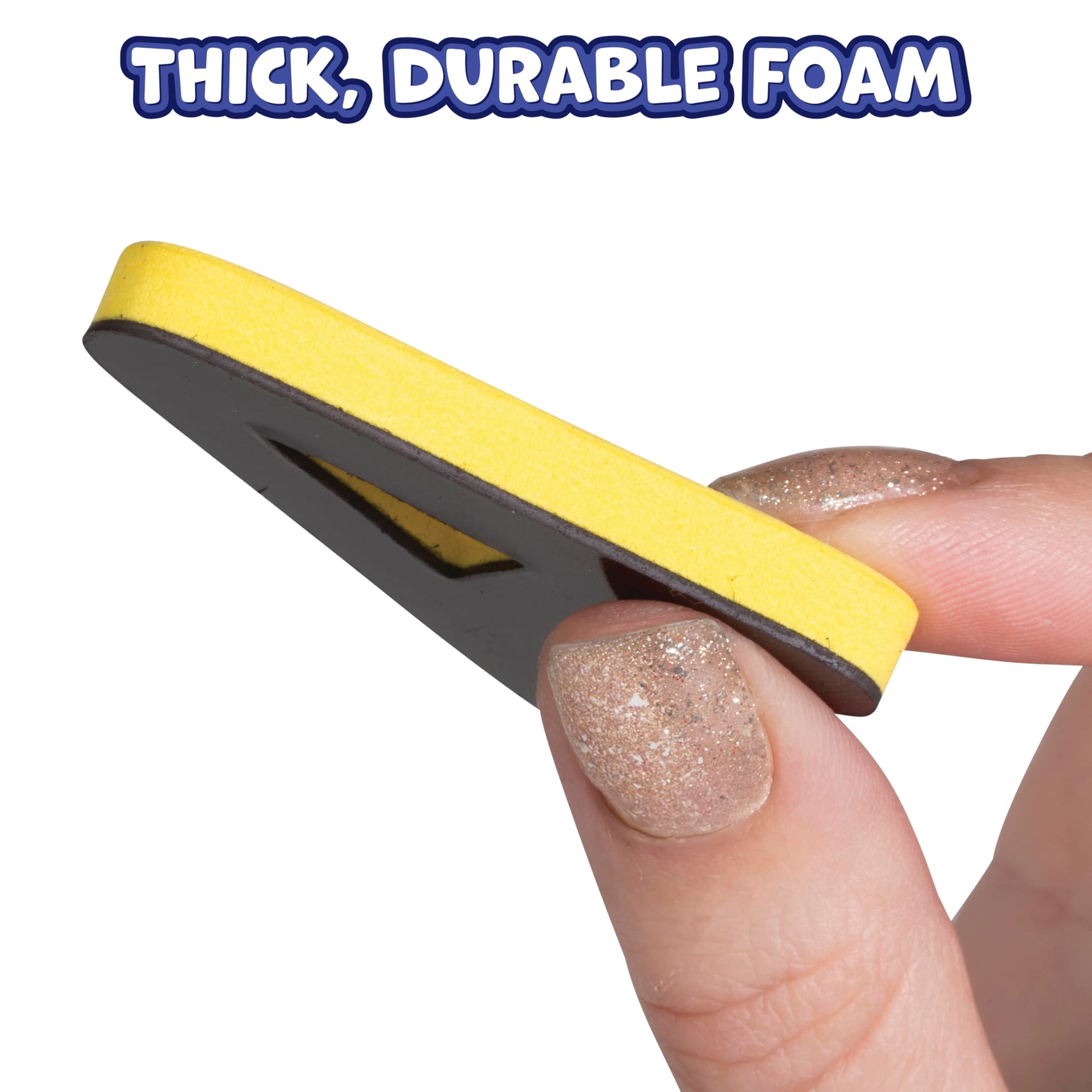 - NO SMALL MAGNETS -- The magnets on the pieces are cut to the shape of their foam letters and glued on, which means no lost small magnets!