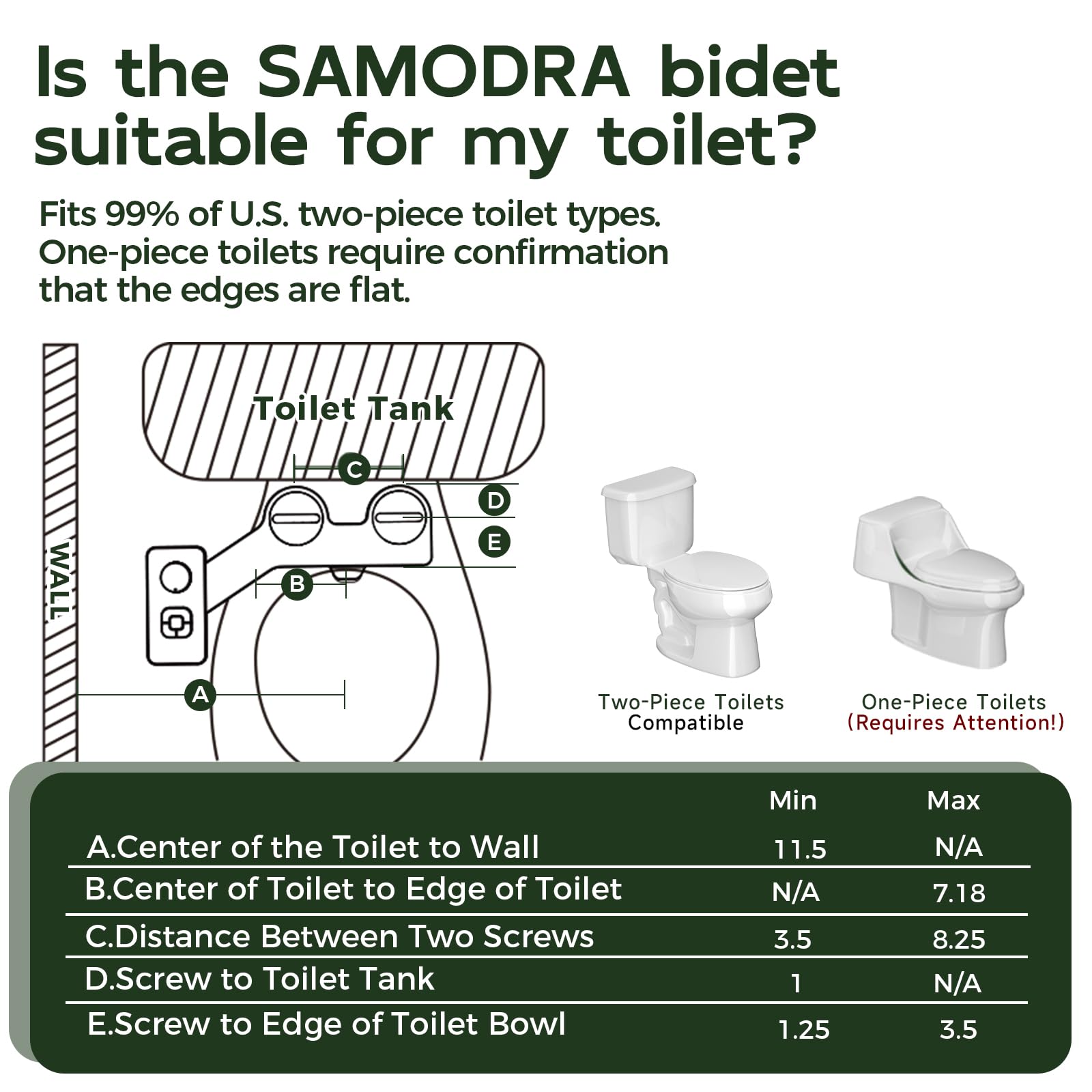 - Dual Spray Nozzles: Bidet attachment features dual nozzles for two spray modes: front cleaning for women's private, rear cleaning for men & women. Samodra upgrades knob switch to button design for easier to switch between patterns