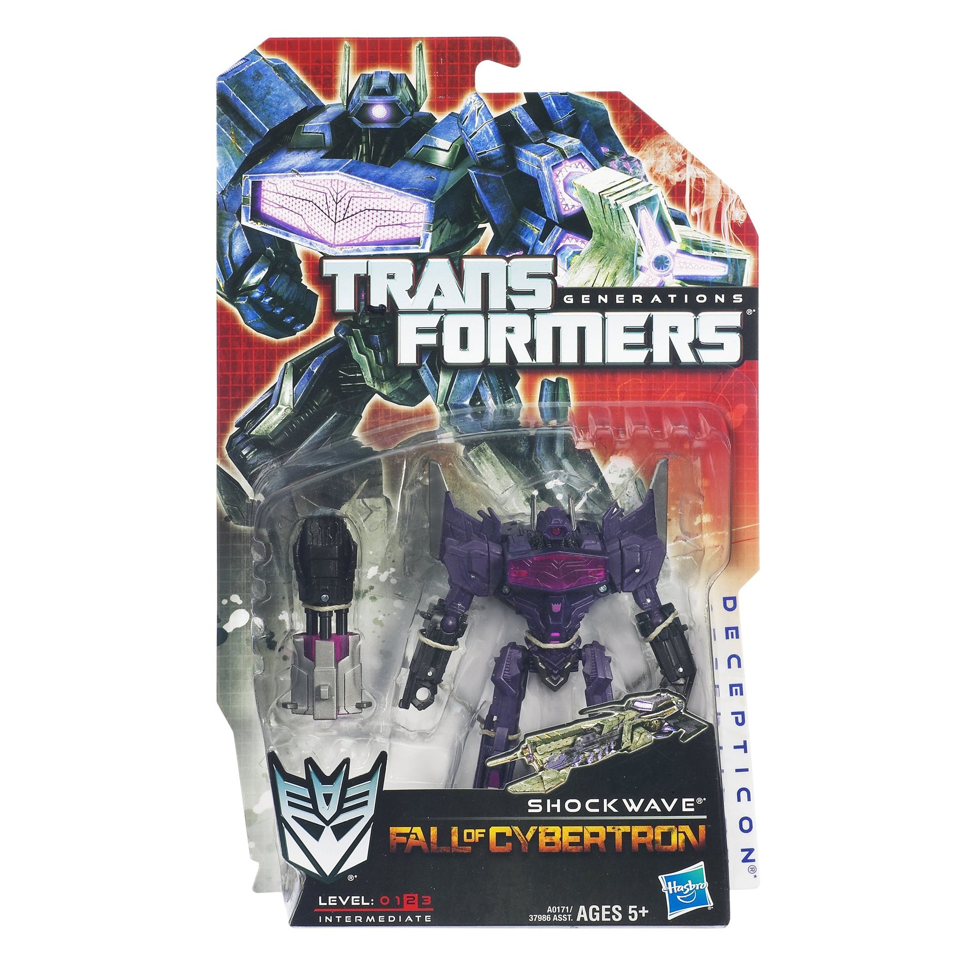 Product DescriptionTransformers Generations Fall of Cybertron Series 1 Shockwave FigureFrom the ManufacturerThe battle between AUTOBOT and DECEPTICON is never over, and this SHOCKWAVE figure is the next generation of awesome TRANSFORMERS action! Your SHOCKWAVE figure comes armed with his strategic thinking skills and a laser cannon that will make any AUTOBOT think twice about taking him on. But when he needs to go on the move with more firepower, convert him to Cybertronian mobile artillery vehicle mode! Keep converting him back and forth so he can handle whatever his AUTOBOT enemies try to dish out.