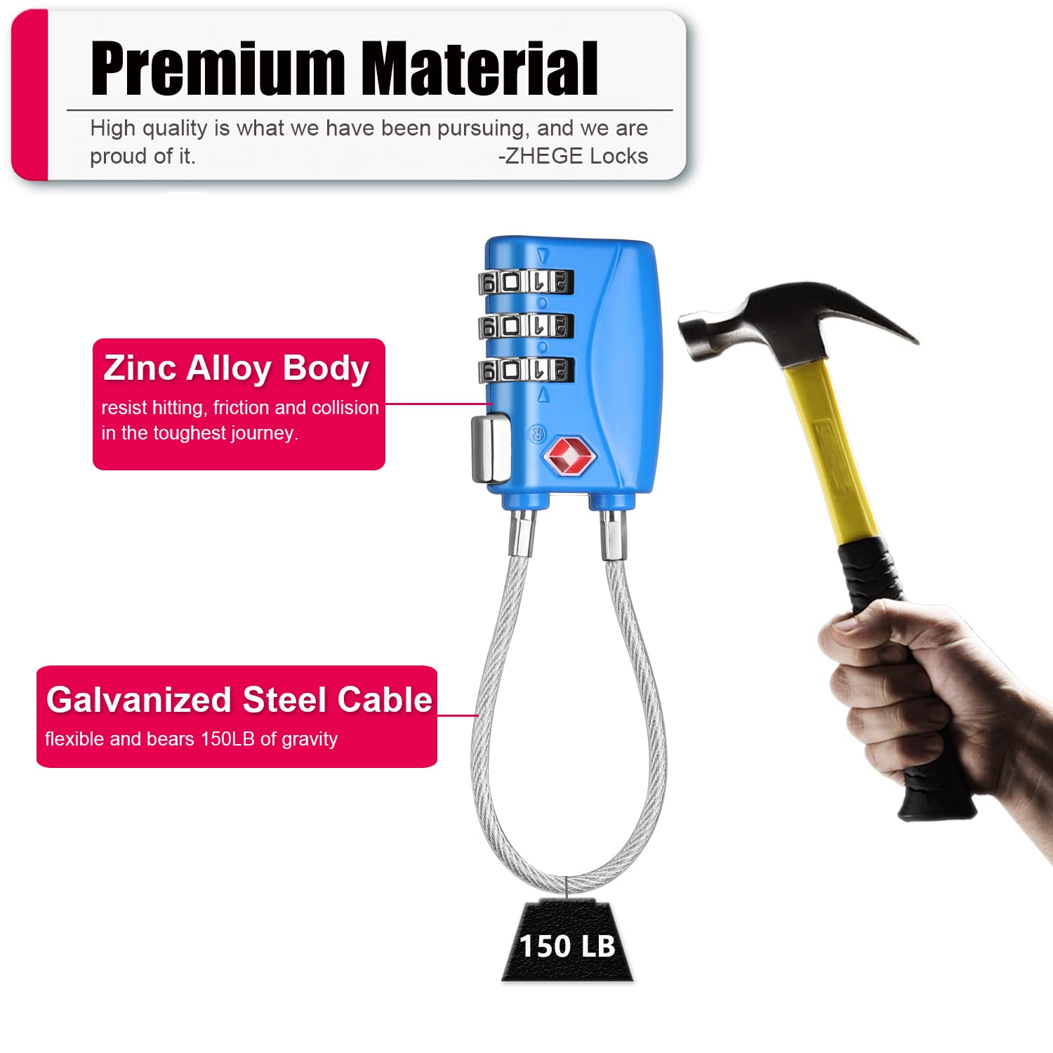 - Flexible Cable Design: Unlike traditional locks with shackle, the tsa combination lock for luggage is flexible to thread through all standard sized zippers and hard case lock holes.The reinforced cable can link 2-3 sets of zippers at one time to secure the entire case/bag.