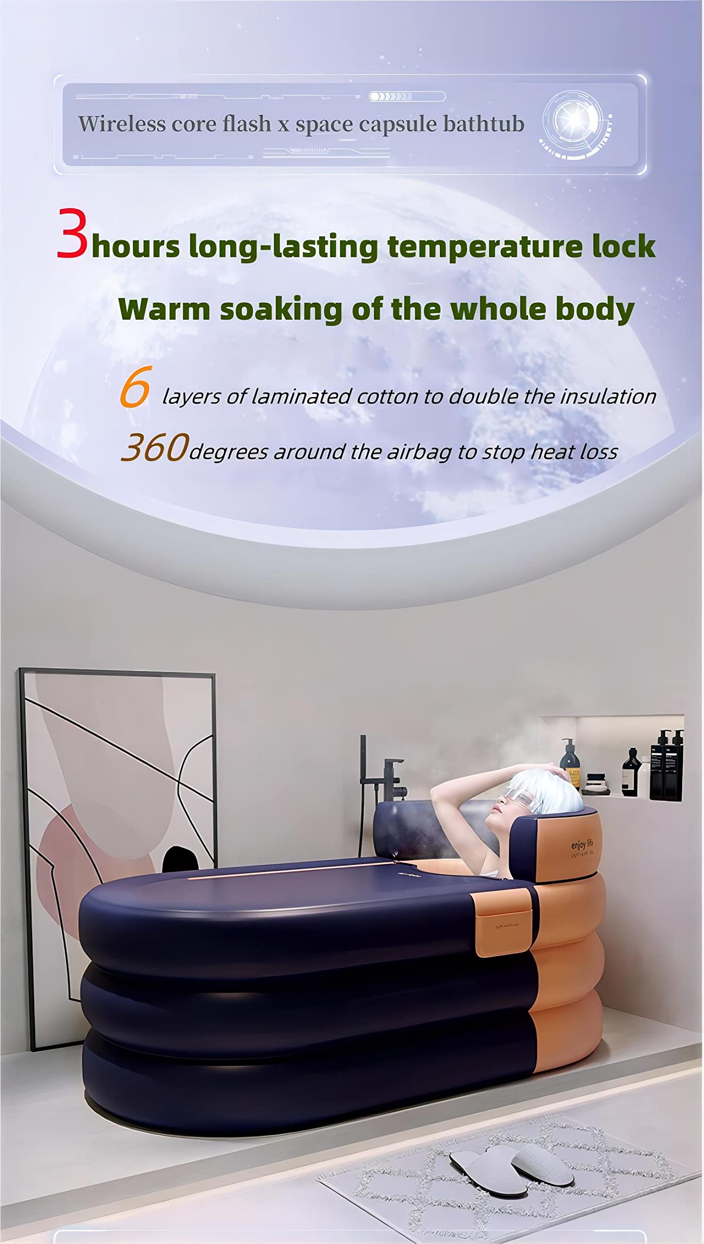 • Fantastic floating bath experience: 65cm+ deep water soaking, the water level is flush with the chest, to achieve zero-gravity decompression, specially designed for long-legged bathing, no need to curl the legs to soak. The 6-layer quilt doubles the insulation, the 360-degree surrounding airbag prevents heat loss, and the temperature is locked for 3 hours for a long time.