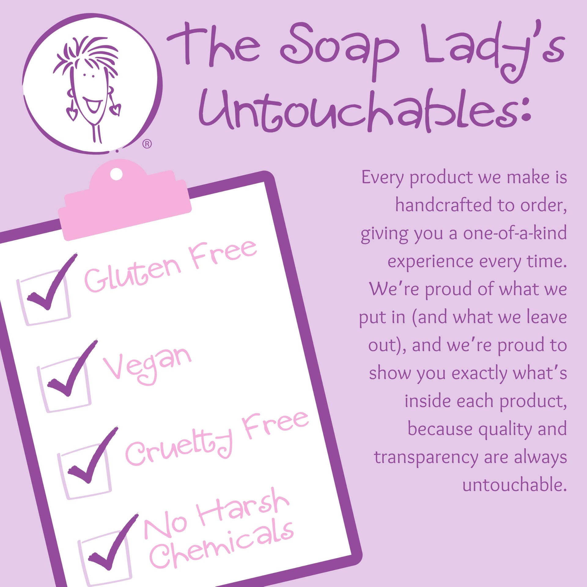 • FAMILY-OWNED & HANDCRAFTED IN THE USA: The Soap Lady is a family-owned, small business that has been creating artisan bath and body products since 1996. What began in our kitchen has grown into a spacious Soap Factory in Sandy, Utah, where multiple generations work together to handcraft, hand cut, and hand wrap every item. From fizzy bath bomb kits to soaps, scrubs, and more, each product is made with domestically sourced ingredients, care, and creativity you can trust.