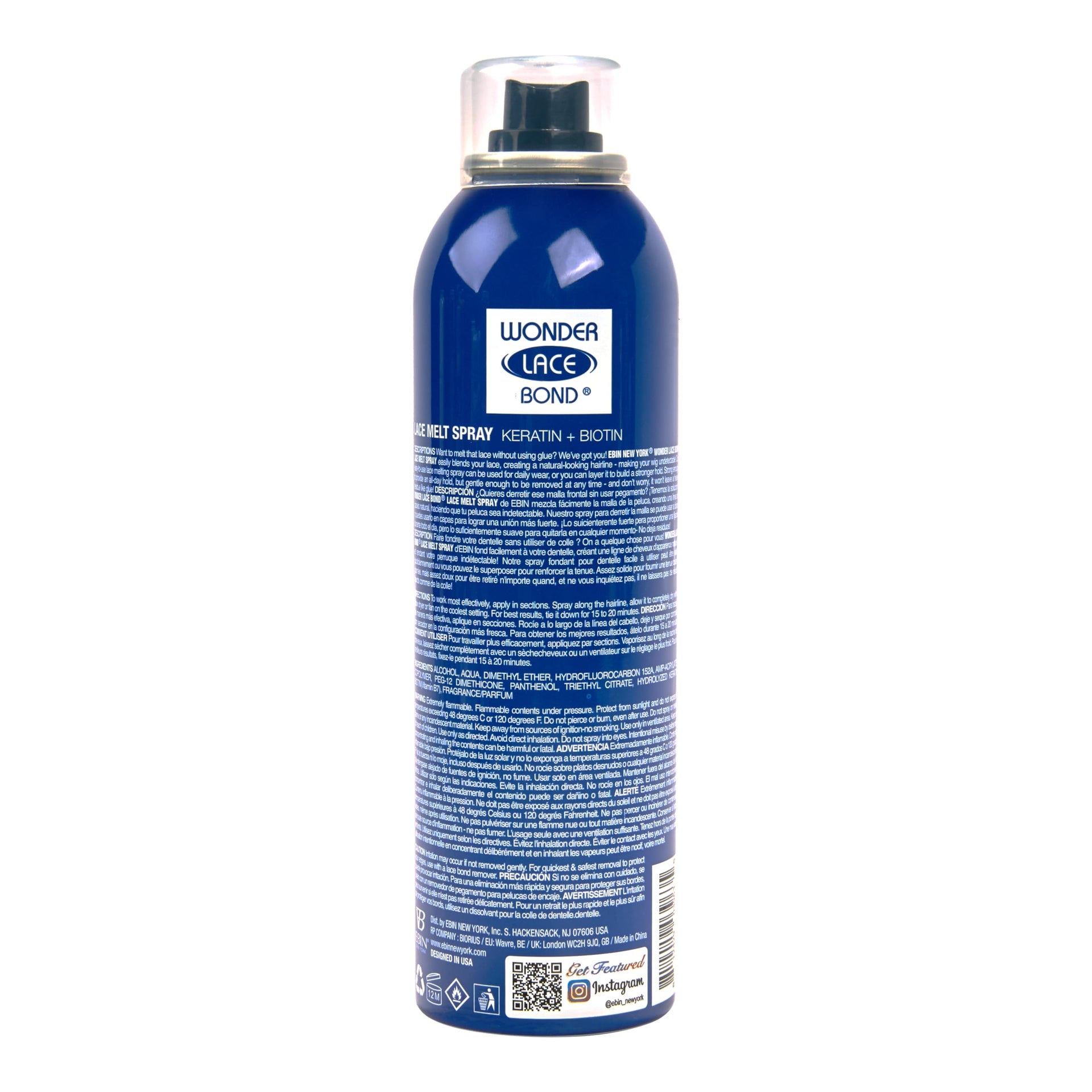- [LACE MELT] Introducing our Lace Melt Spray, the ultimate solution for achieving a flawless, natural-looking wig application. This spray is designed to seamlessly melt the lace onto your scalp and hairline, creating an undetectable finish. Its buildable formula allows it to be used in conjunction with EBIN NEW YORK adhesive bond or spray, or it can be used on its own for versatile styling options.