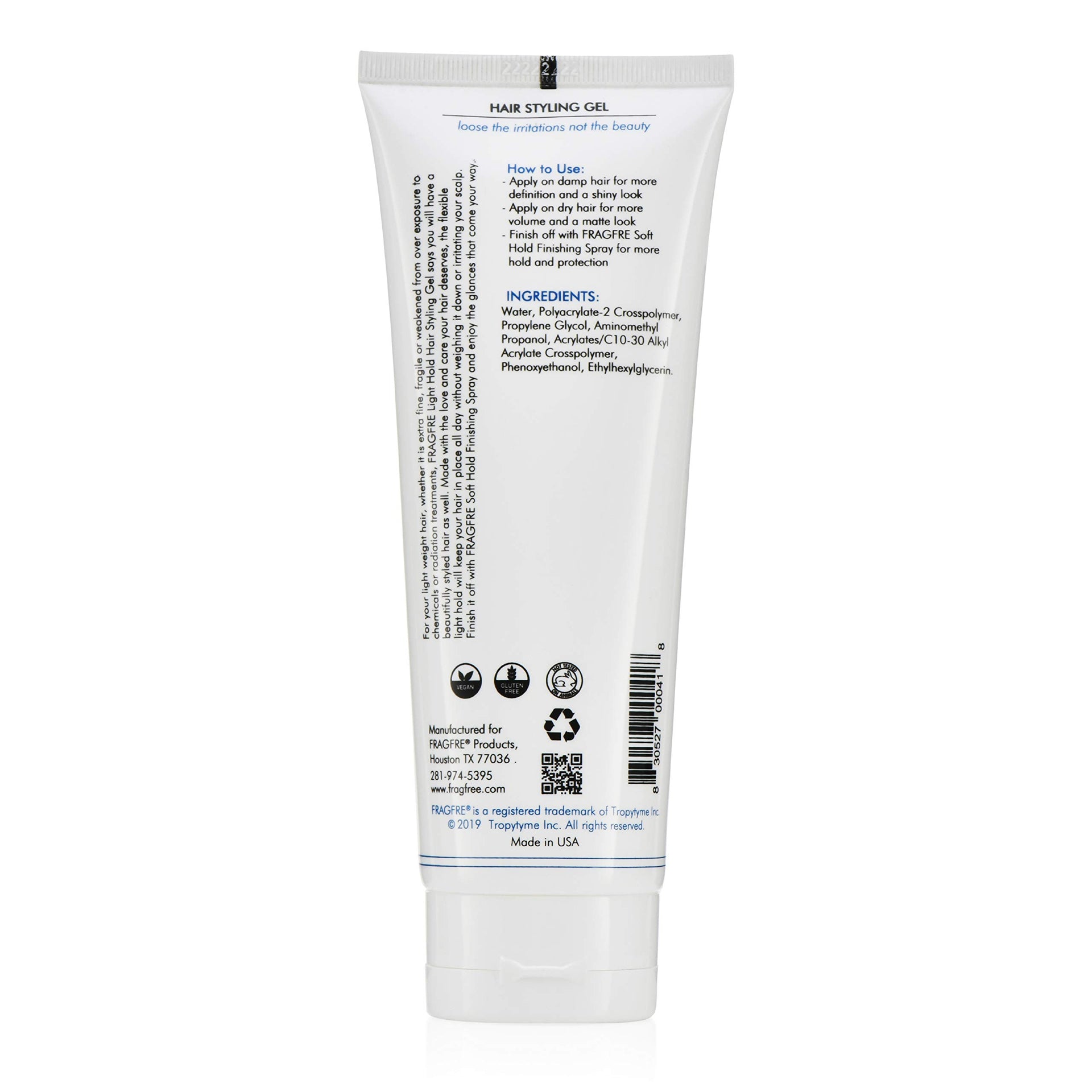 FRAGFRE Light Hold Hair Gel 8oz – Fragrance Free Styling Gel for Fine & Fragile Hair – Hypoallergenic, Vegan, Gluten & Cruelty Free