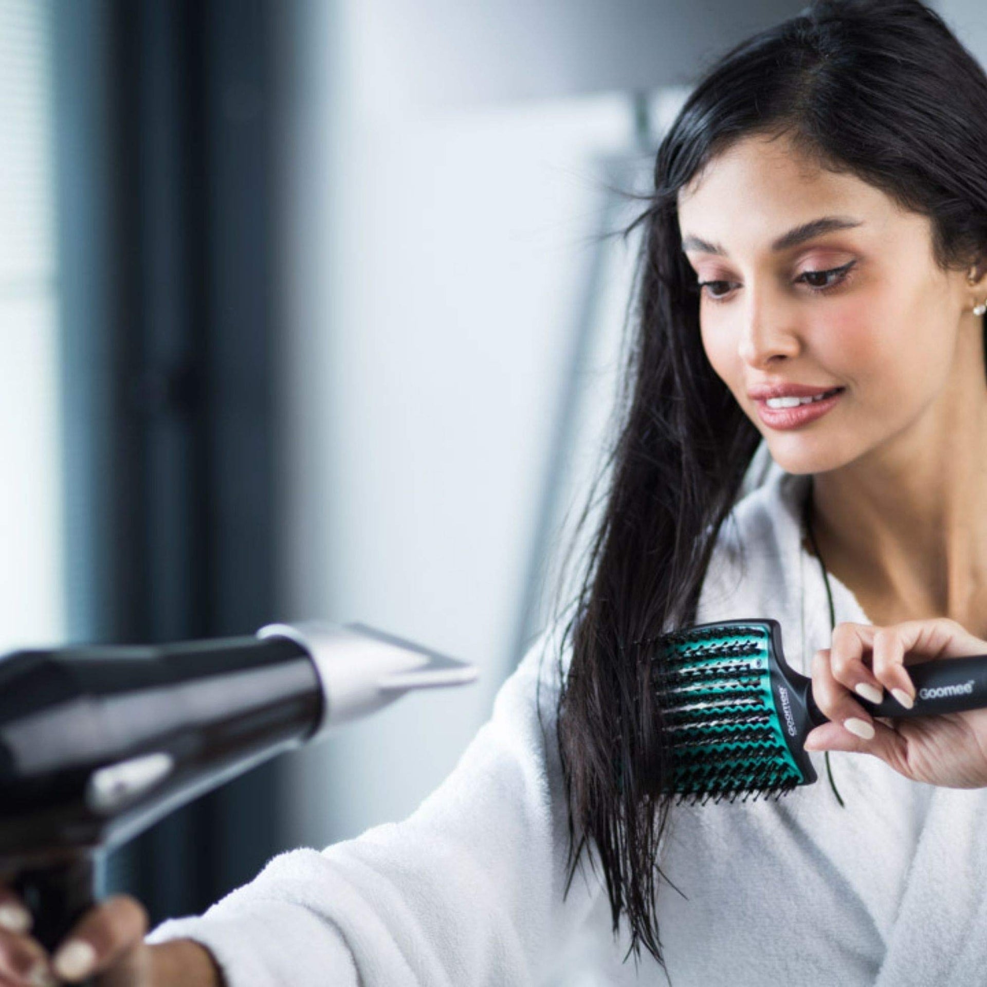 Goomee Straight & Curly Hair Detangler Brush – Nylon & Boar Bristles for Soft, Smooth, Shiny Hair, Wet & Dry Use, Vent Design for Fast Drying, Large Green