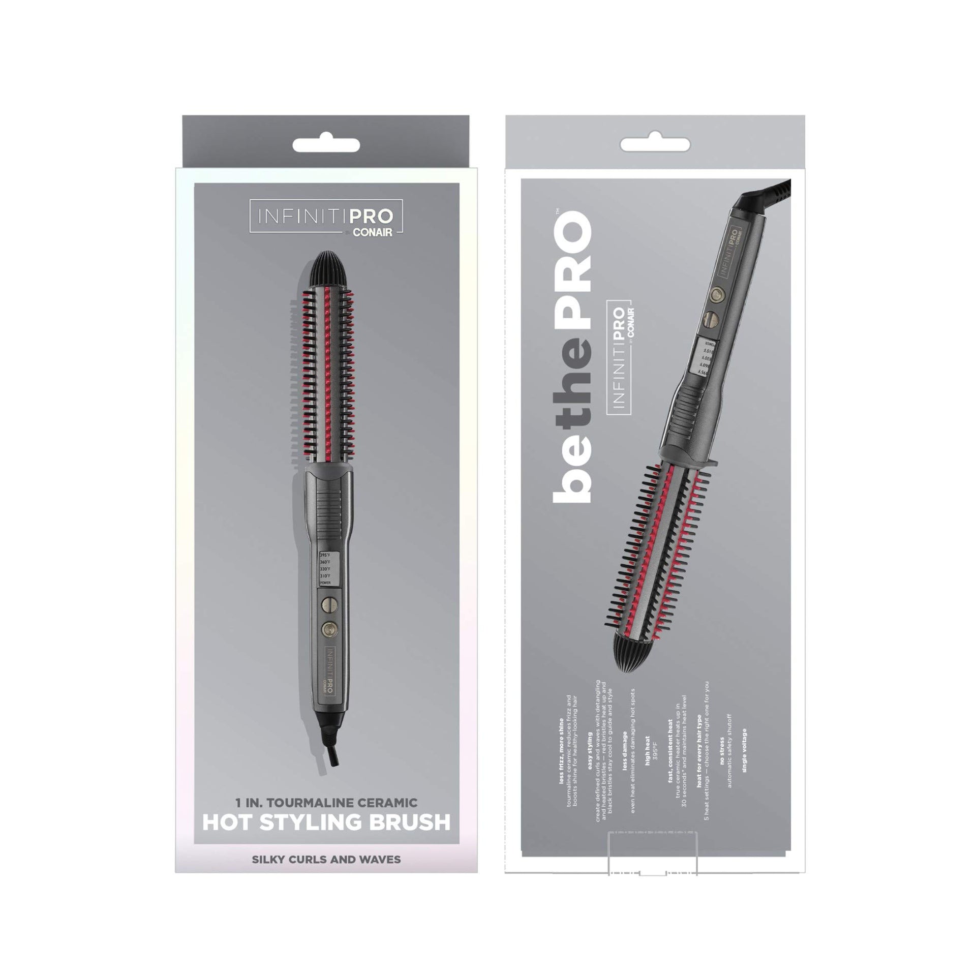 - 1-Inch Ceramic Styling Curl Brush: This curler brush features tourmaline ceramic technology to reduce frizz for healthy looking, shiny hair, providing up to 395 F with a coated ceramic barrel that delivers even heat with no hot spots