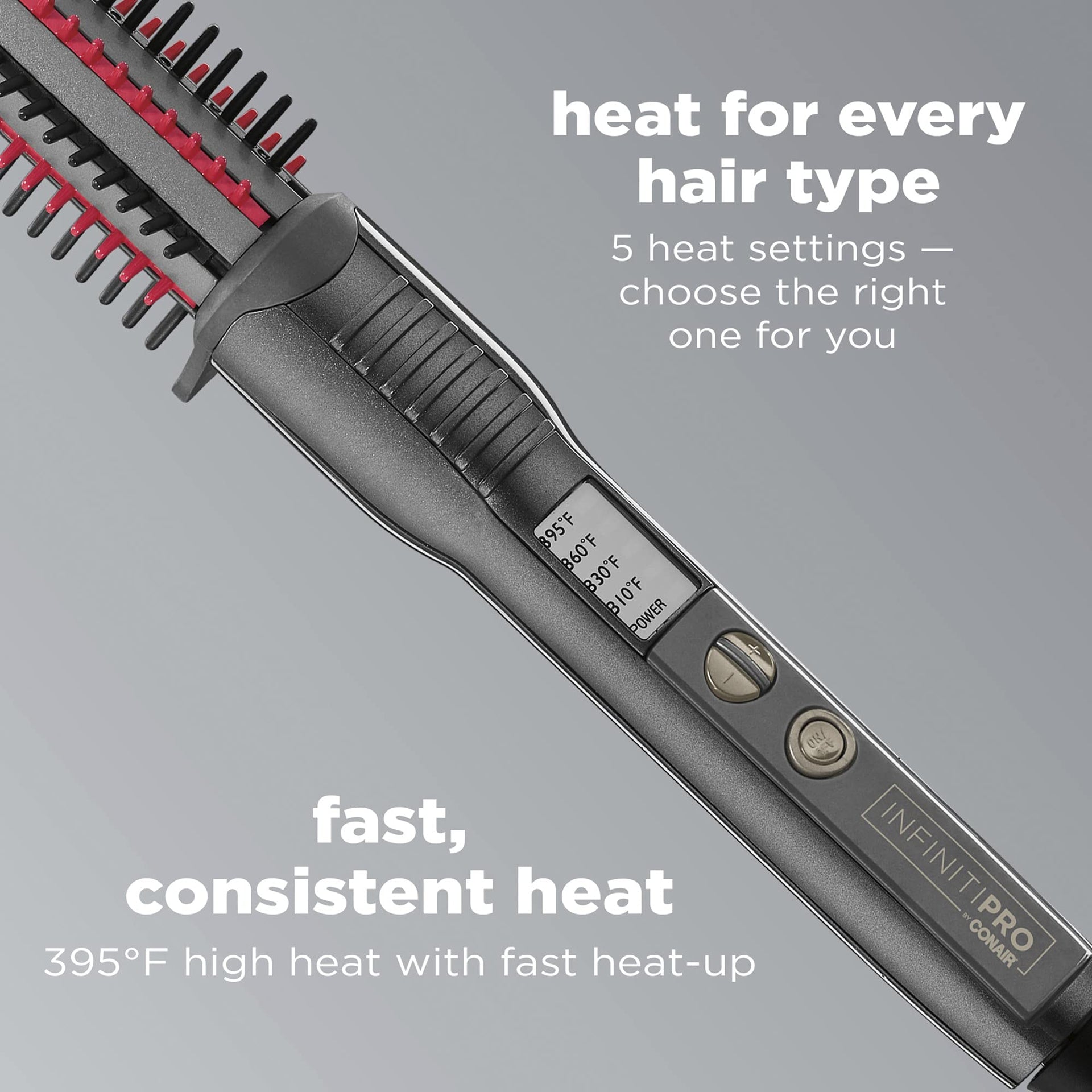 Conair BC2NWTP InfinityPro 1" Nano Tourmaline Ceramic Hot Brush, 30-Second Heat-up, 395°F Heat Setting, Uniform Heat Recovery System, Extra-smooth Ceramic Surface, 5 Temperature Settings, Auto-off