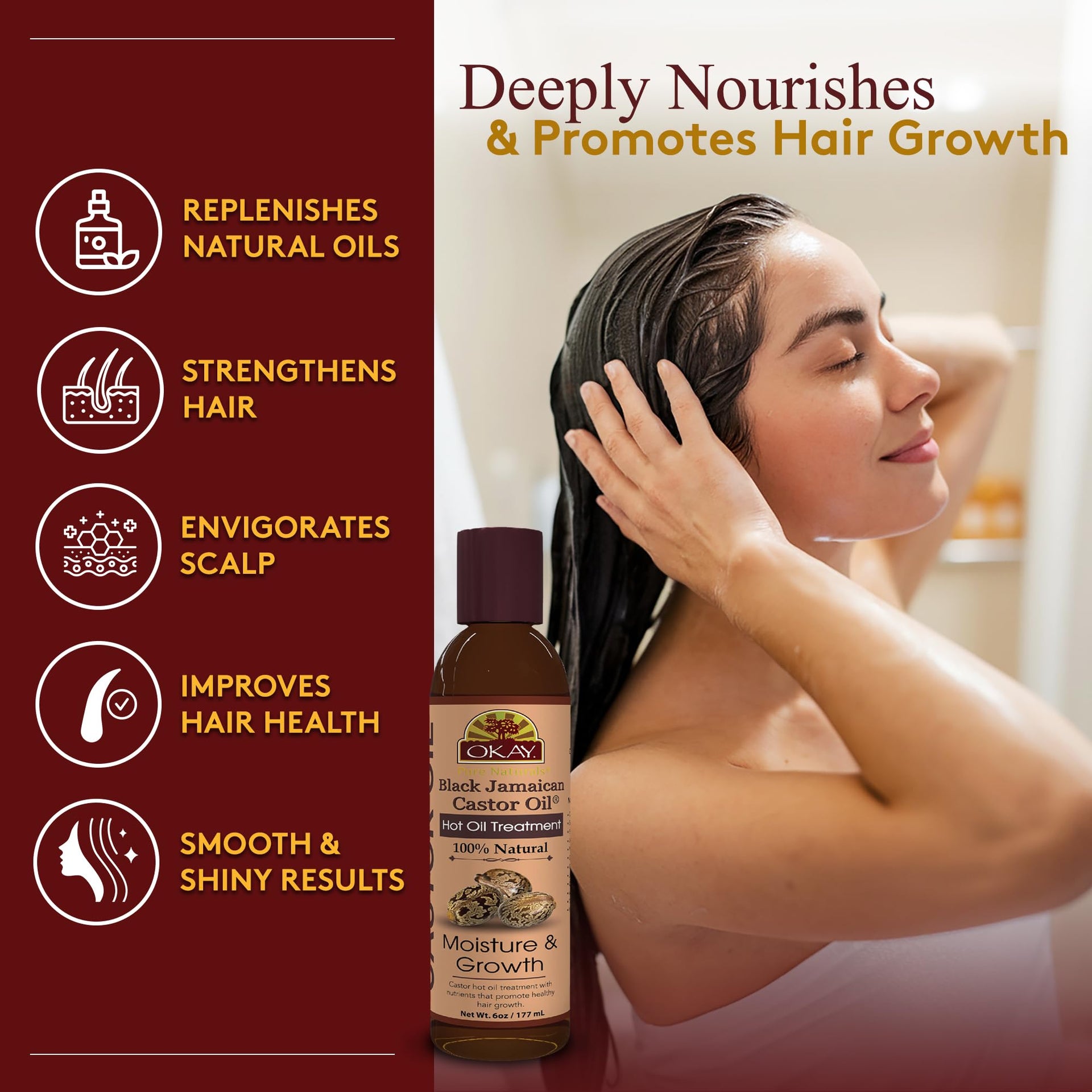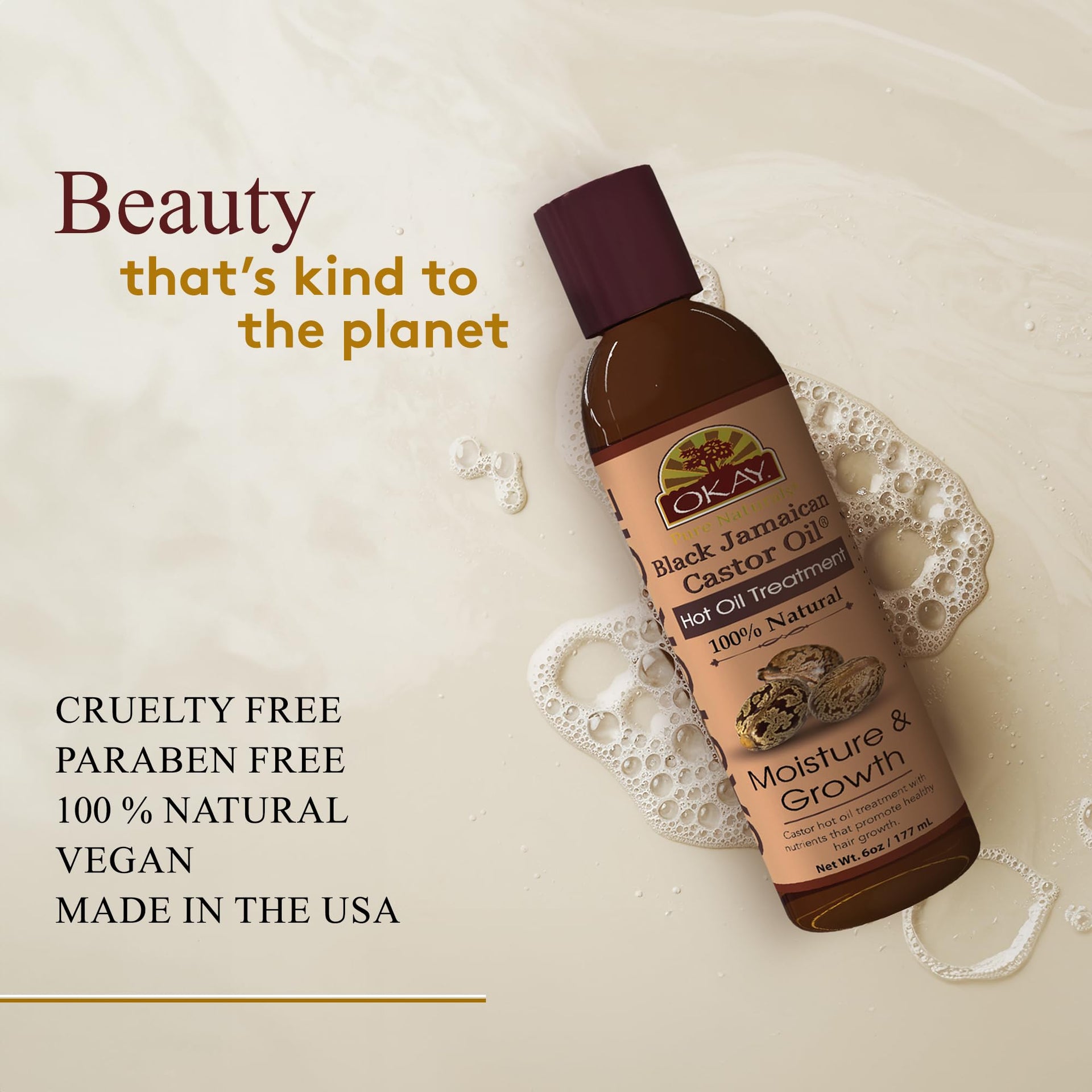 - OKAY 100% Natural Black Jamaican Castor Hot Oil Hair Treatment - Castor Oil for Dry Damaged Frizzy Hair, Pure Therapy Blend with Jojoba for Men