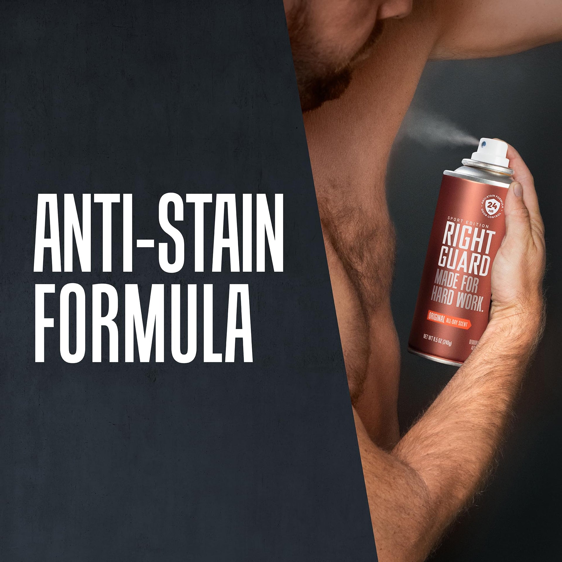 Details: Stay protected, stay fresh, and stay focused with Right Guard Sport Original Scent Deodorant Spray. Made for men who hustle hard and never slow down, this aluminum-free spray deodorant delivers serious performance with a clean, masculine scent that lasts. Whether you’re working a double shift or handling business off the clock, Right Guard is the deodorant men trust to get the job done. With 24-hour odor control, our Original scent keeps you feeling fresh and smelling clean all day. The anti-stain formula goes on clear to help protect your uniforms, work shirts, or favorite tee from white marks—so you look as sharp as you feel. The quick-drying spray makes application fast and hassle-free. No residue, no sticky feeling—just instant protection in one simple spray. With over 60 years under our toolbelt, Right Guard continues to deliver the strength, reliability, and innovation men count on. Every can in this 8.5 oz, 2-pack is built for long-lasting use, giving you reliable protection whenever you need it. Just grab, spray, and get after it—because you don’t take days off, and neither should your deodorant.