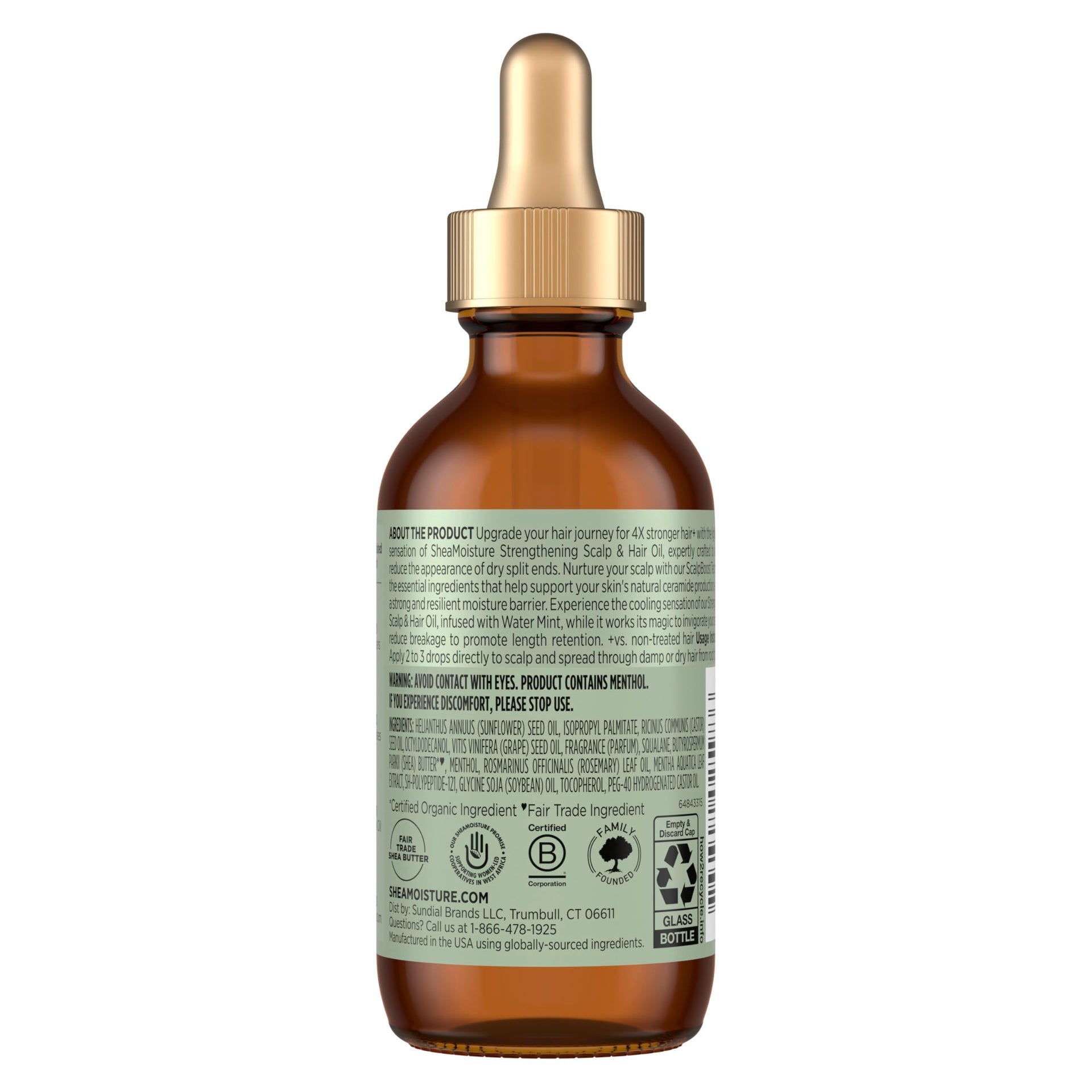 Upgrade your hair journey for 4X stronger hair with the lightweight sensation of SheaMoisture Strengthening Scalp & Hair Oil, expertly crafted to instantly reduce the appearance of dry split ends. Nurture your scalp with our ScalpBoost Technology, the essential ingredients that help support your skin's natural ceramide production, ensuring a strong and resilient moisture barrier. Experience the cooling sensation of our Strengthening Scalp & Hair Oil, infused with Water Mint, while it works its magic to invigorate your scalp and reduce breakage to promote length retention. vs. non-treated hair We are natural,sustainably produced goodness - hair care made with love for you and your body. SheaMoisture is pioneering fair trade through Community Commerce at home and abroad. OUR STORY: SheaMoisture is the legacy of Sofi Tucker, a pioneering mother of four and an entrepreneur, who sold Shea Butter, African Black Soap and homemade beauty preparations in Sierra Leone in 1912. We honor her vision by continuing to formulate with Raw Shea Butter handcrafted by women in Africa. With every purchase, you show support of our mission to reinvest back in our communities. Supported by Repeated Grooming Study 23-013 and 23014 - April 17, 2023