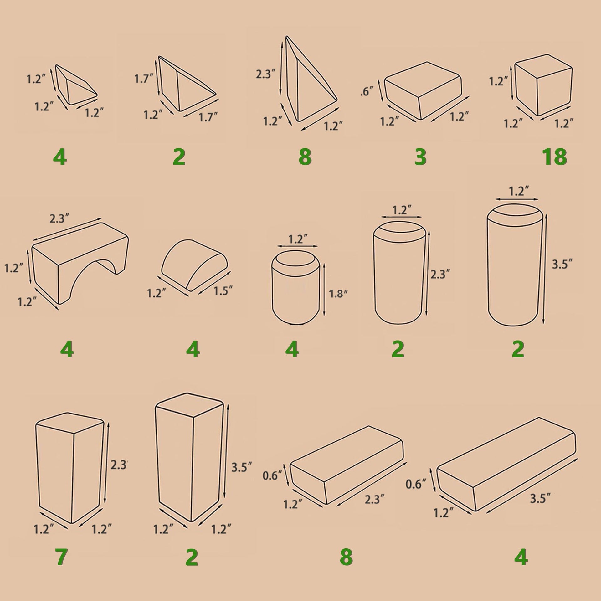 - Beneficial to All Ages: Inspiring classic creativity and improving dexterity, this classic wooden block set and carry case includes 13 different shapes for your children to build to their heart's content. Their imagination will run wild creating unique masterpieces with the variety of shapes. Each suitable size for children to handle including: square, rectangle, circle, half-circle, triangle, cylinder, arch and more! This toy can also serve as a "communication tool" for the young and old!