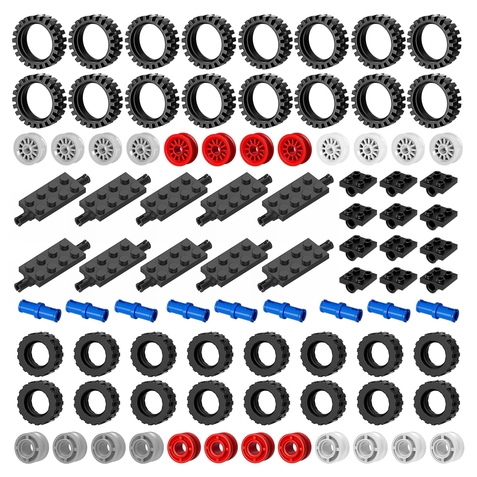 Details: Wheels and Axles Sets Tires Building Kit, Compatible with Lego Wheels and Axles, 98 Pcs Car Parts and Classic Pieces Accessories, Bulk Bricks Sets Education Construction Toys