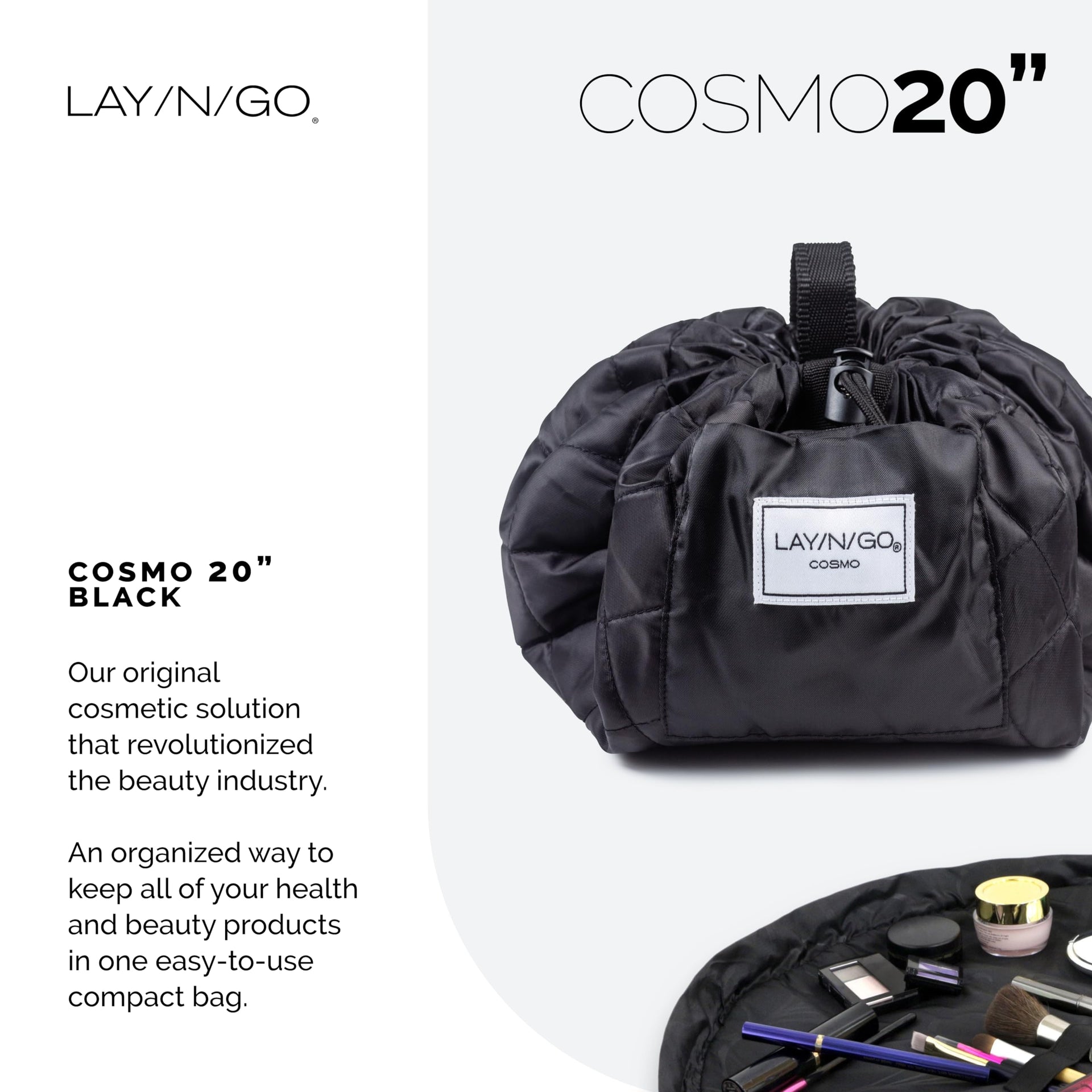 - QUICK & EASY CLEANUP: No more digging through messy makeup bags. Our lay-flat makeup organizer bag lets you see all your cosmetics at once. The raised lip keeps items in place, and with a simple pull of the drawstring, you're packed and ready to go.