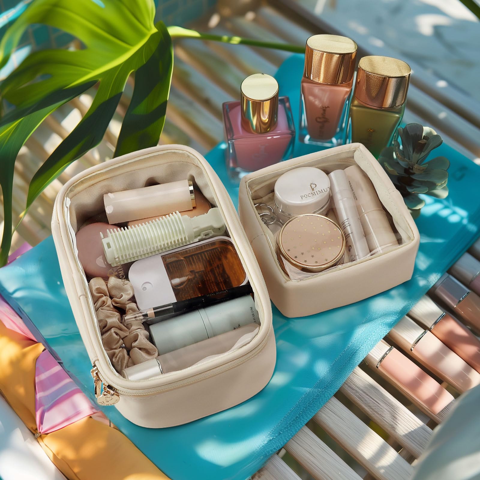 Pocmimut Mini Makeup Bag – Clear Travel Cosmetic Pouch, Toiletry Organizer for Women, Cute Purse & Car Accessories, Beige