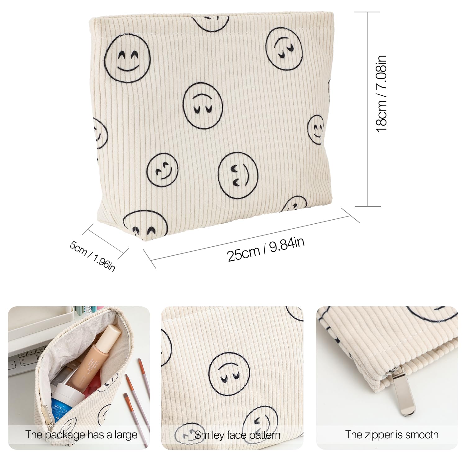 - 【Cosmetic bag】Travel Makeup bag make of thickened corduroy fabric, soft fabric, comfortable to touch.Thickened lining to increase thickness and firmness.Strong, smooth zipper makes it easy to place items safely