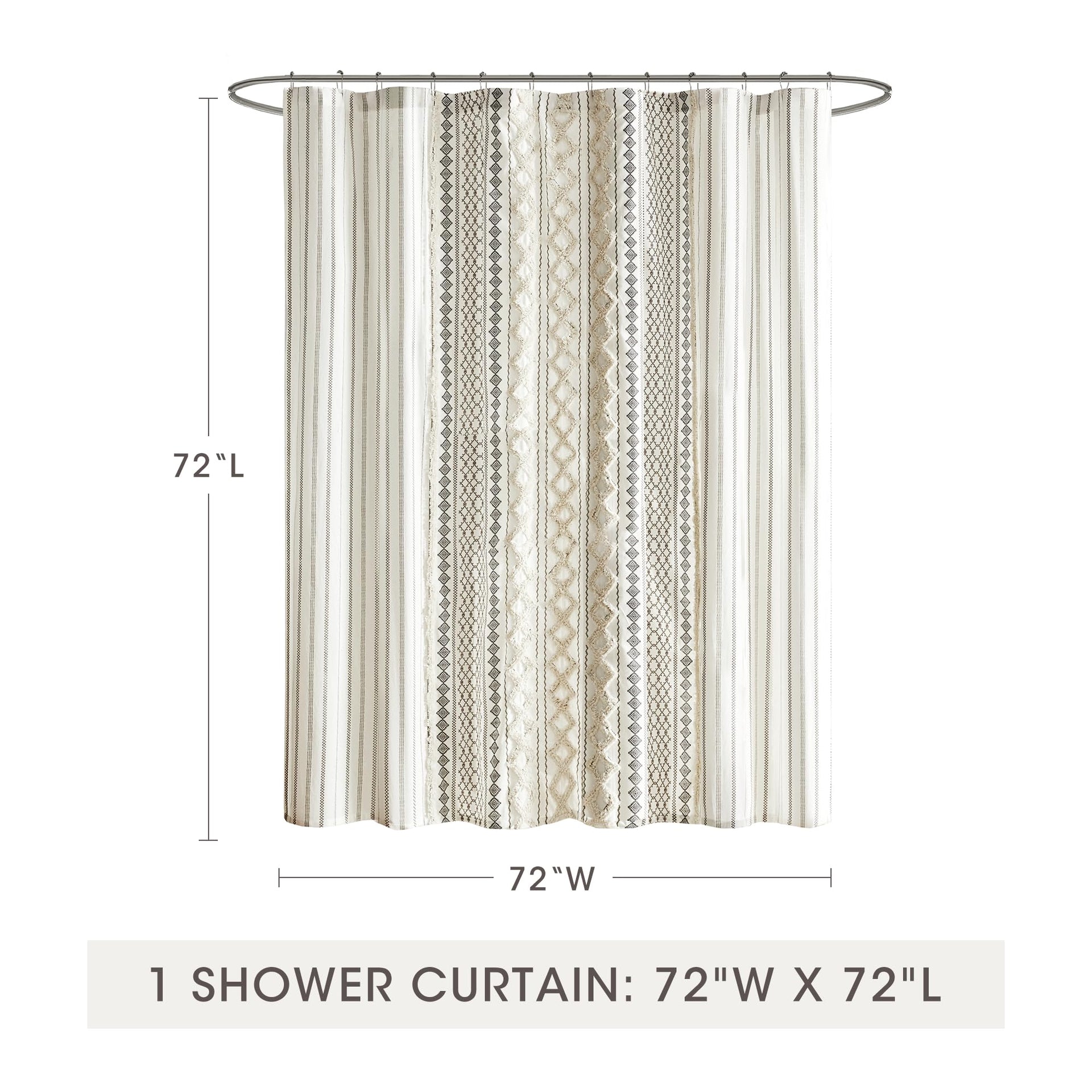 • PACKAGE - Modern style farmhouse bath curtain set includes: 1 Shower Curtain: 72"W x 72"L